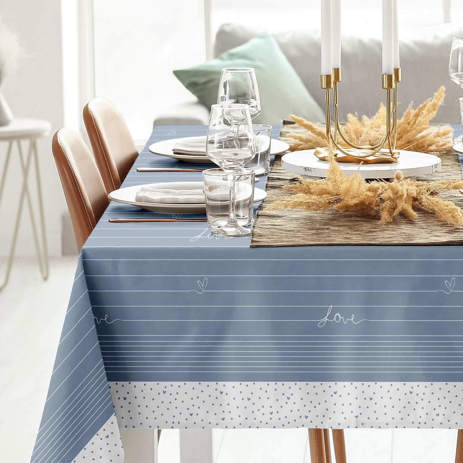 Скатерть рогожка 145х145 "Унисон" Love / голубая