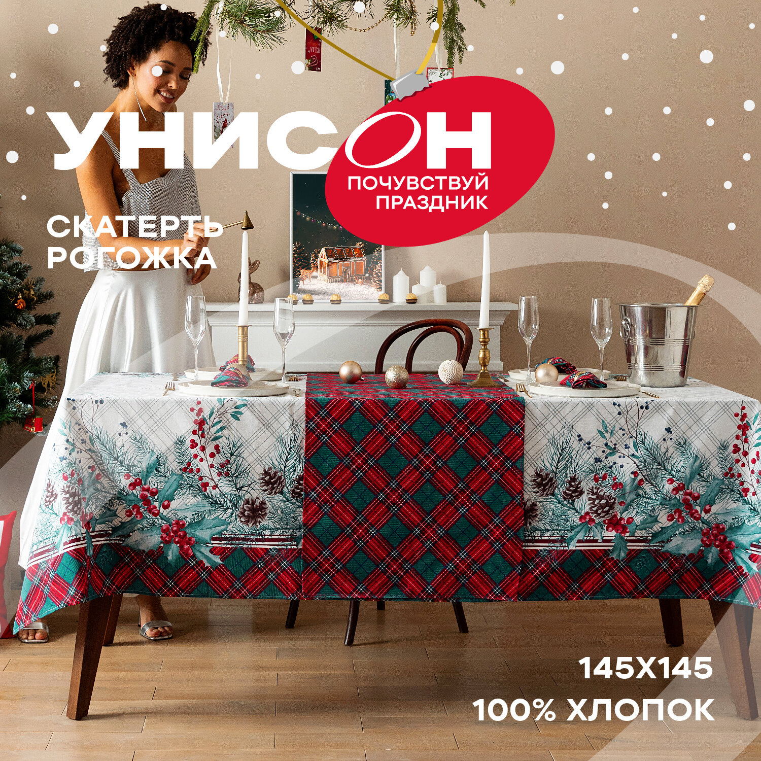 Скатерть рогожка 145х180 "Унисон" рис 33217-2 Jolly christmas