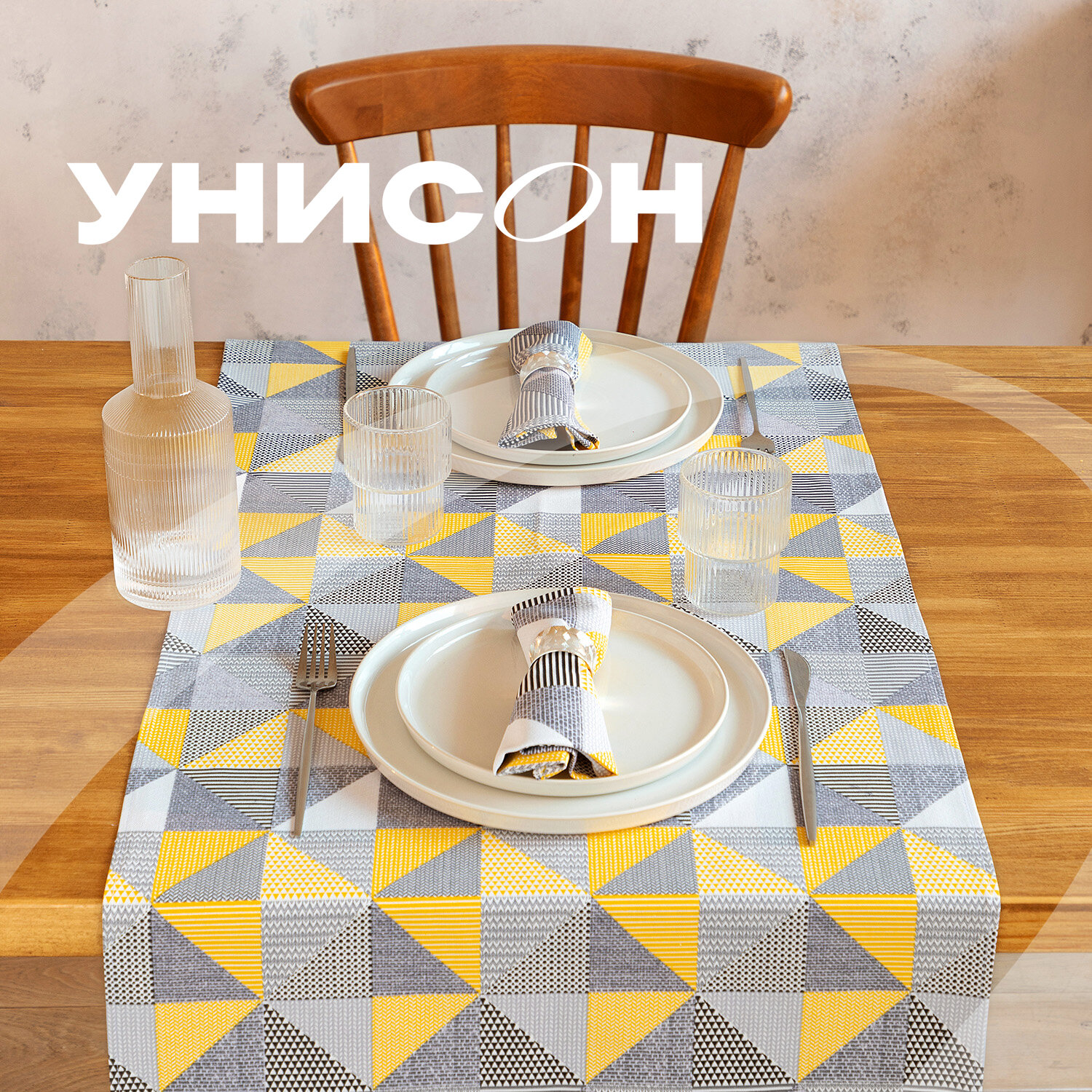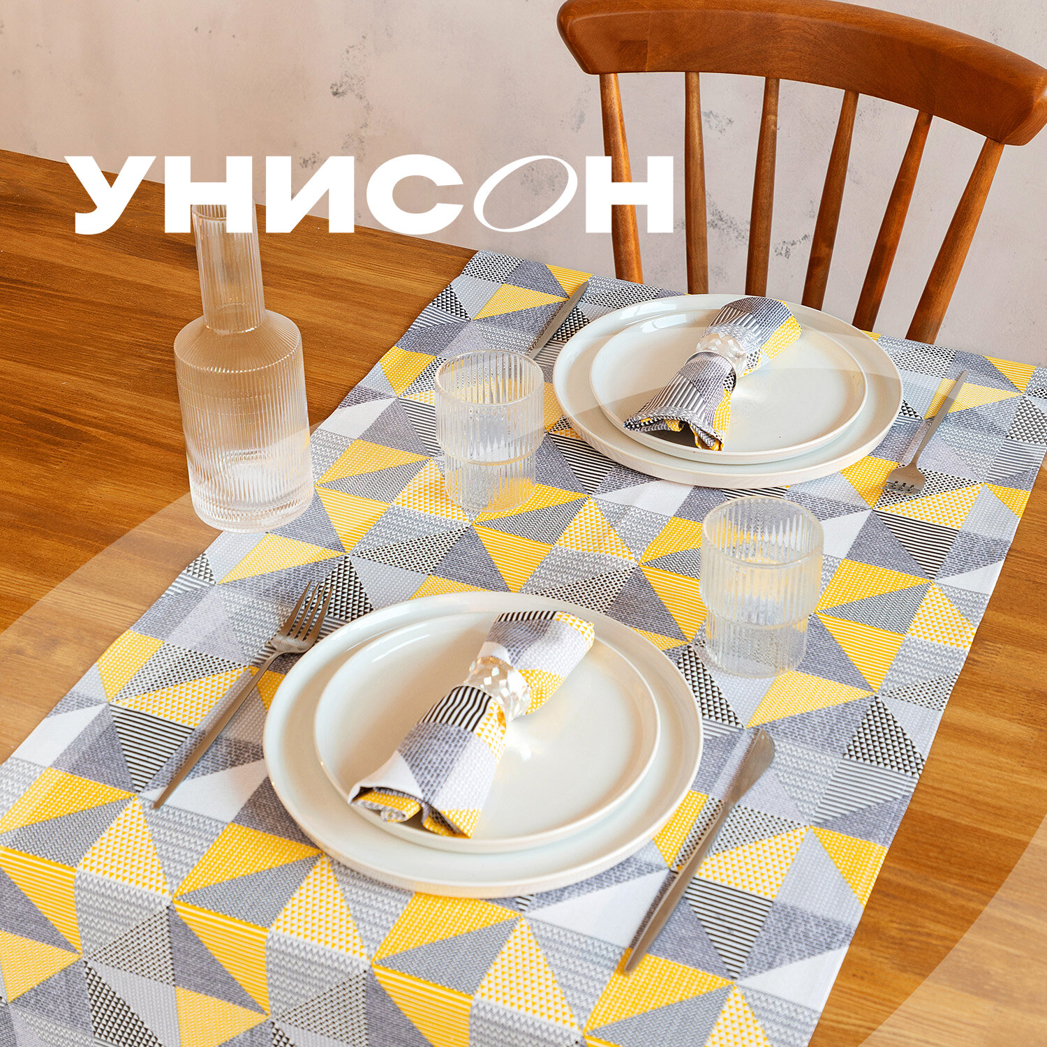 Комплект скатерть на стол 145х220 + скатерть-дорожка 50х145 "Унисон" рис 33014-1/33015-1 Cell