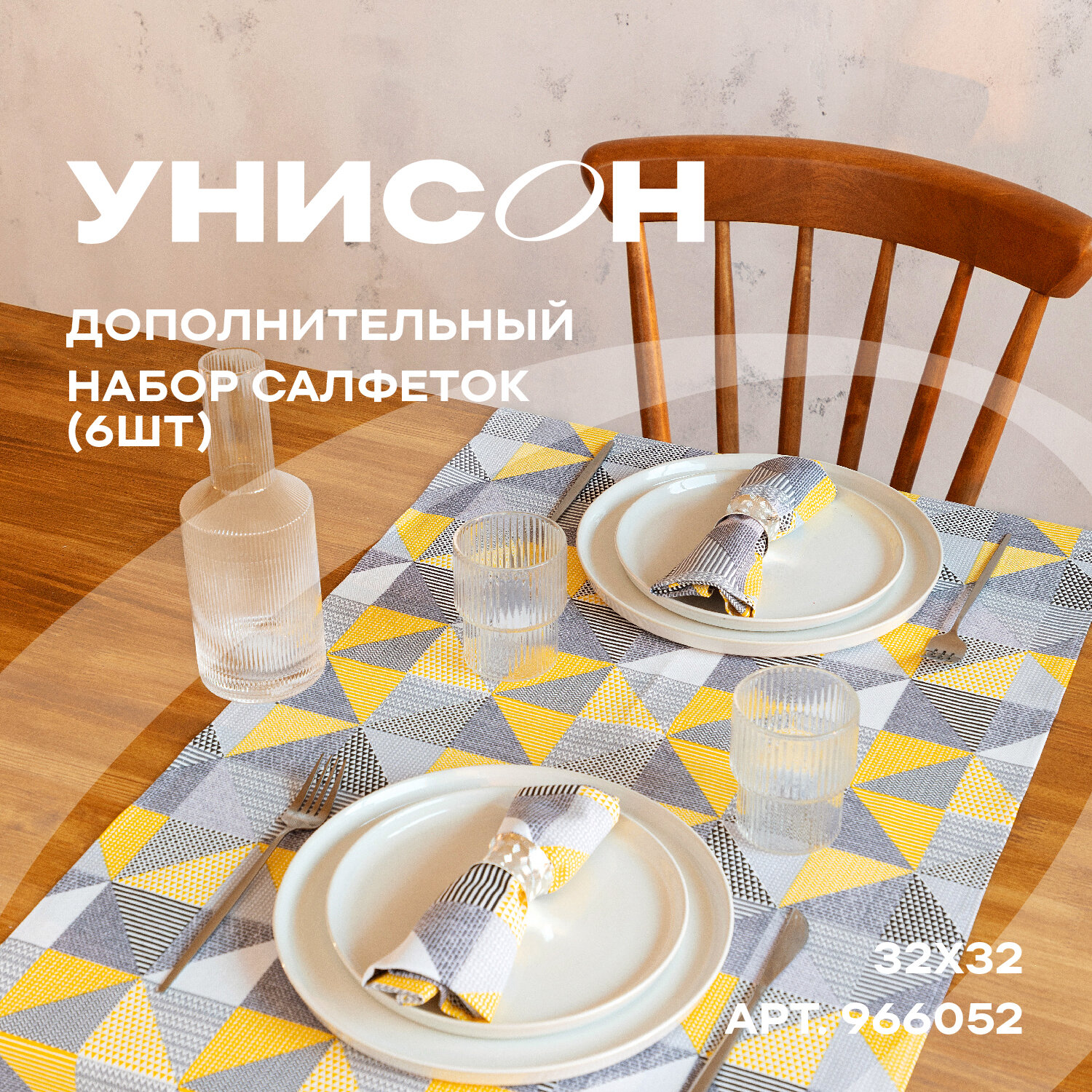 Салфетки на стол сервировочные 32х32 (6 шт) / набор сервировочных салфеток из хлопка "Унисон" рис 33014-1 Сell
