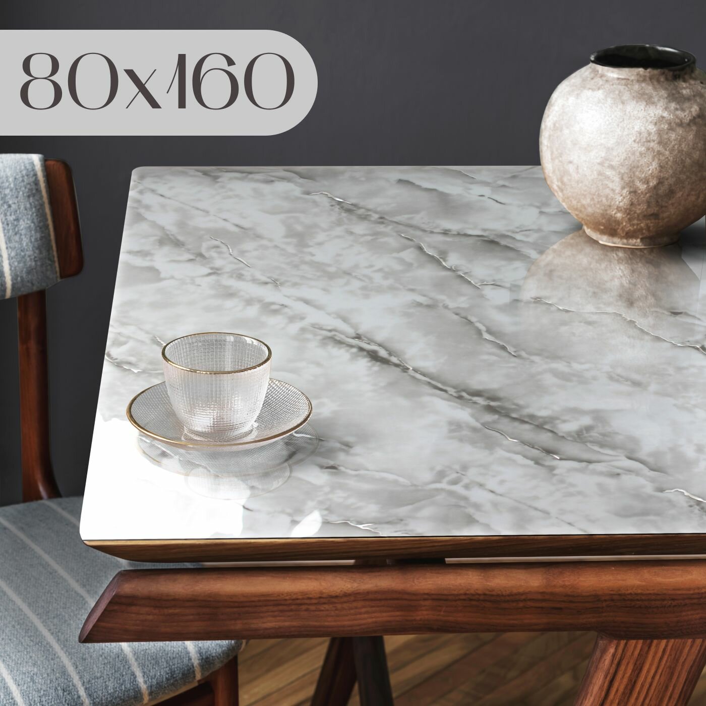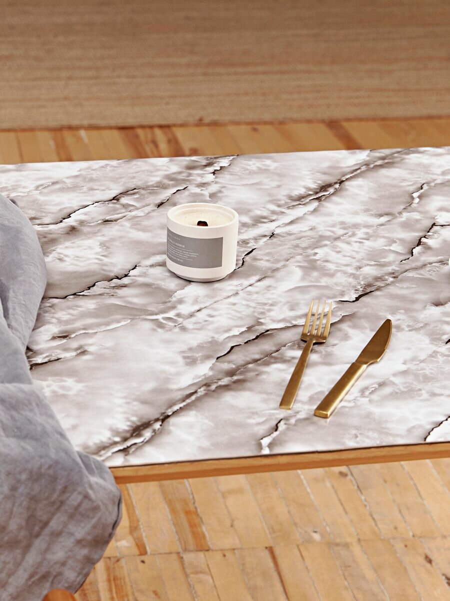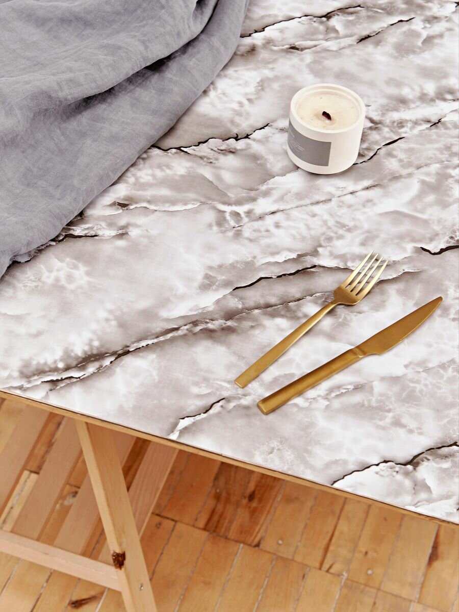 Купить На стол покрытие Гибкое стекло "Серый Мрамор" 80x160см, 0.8мм
