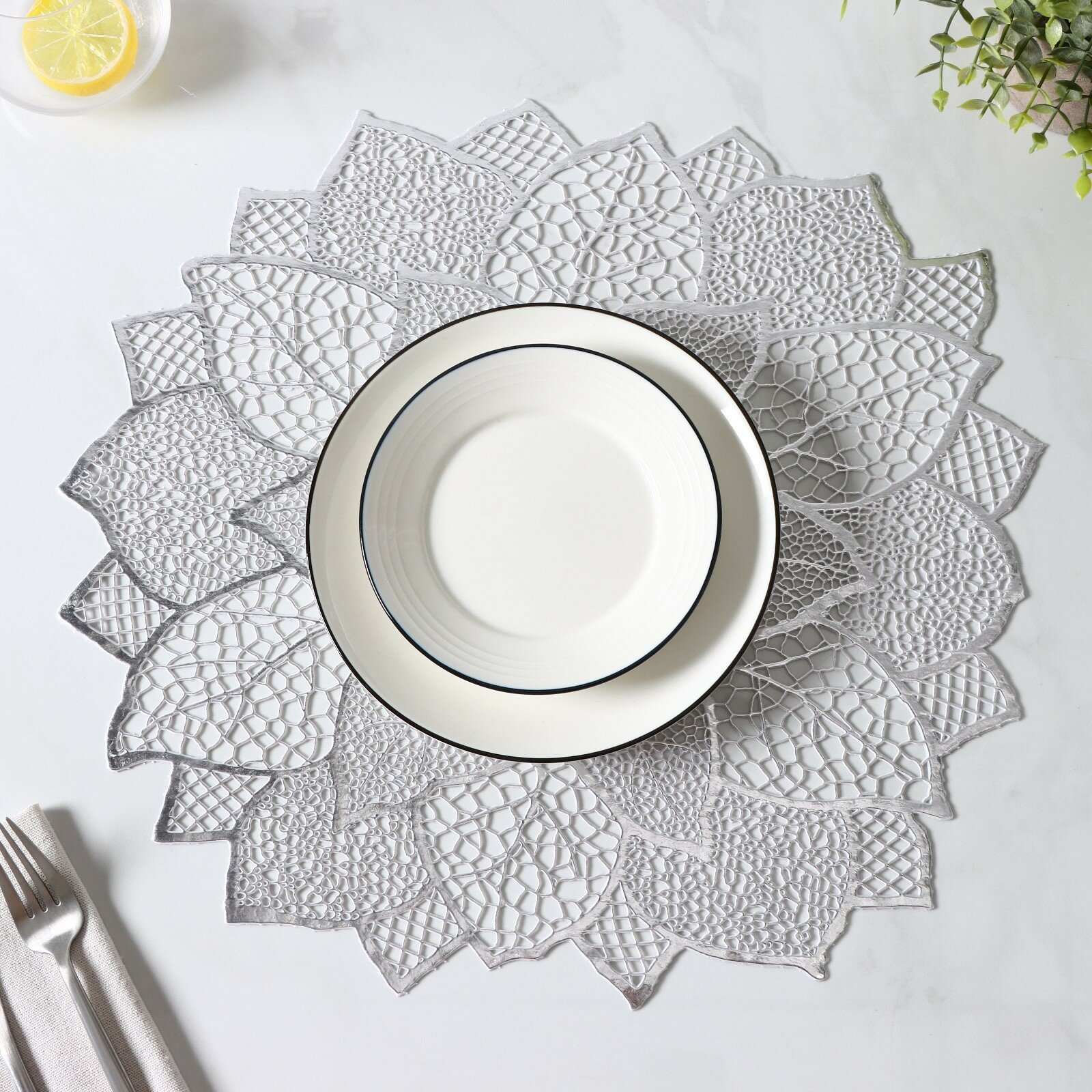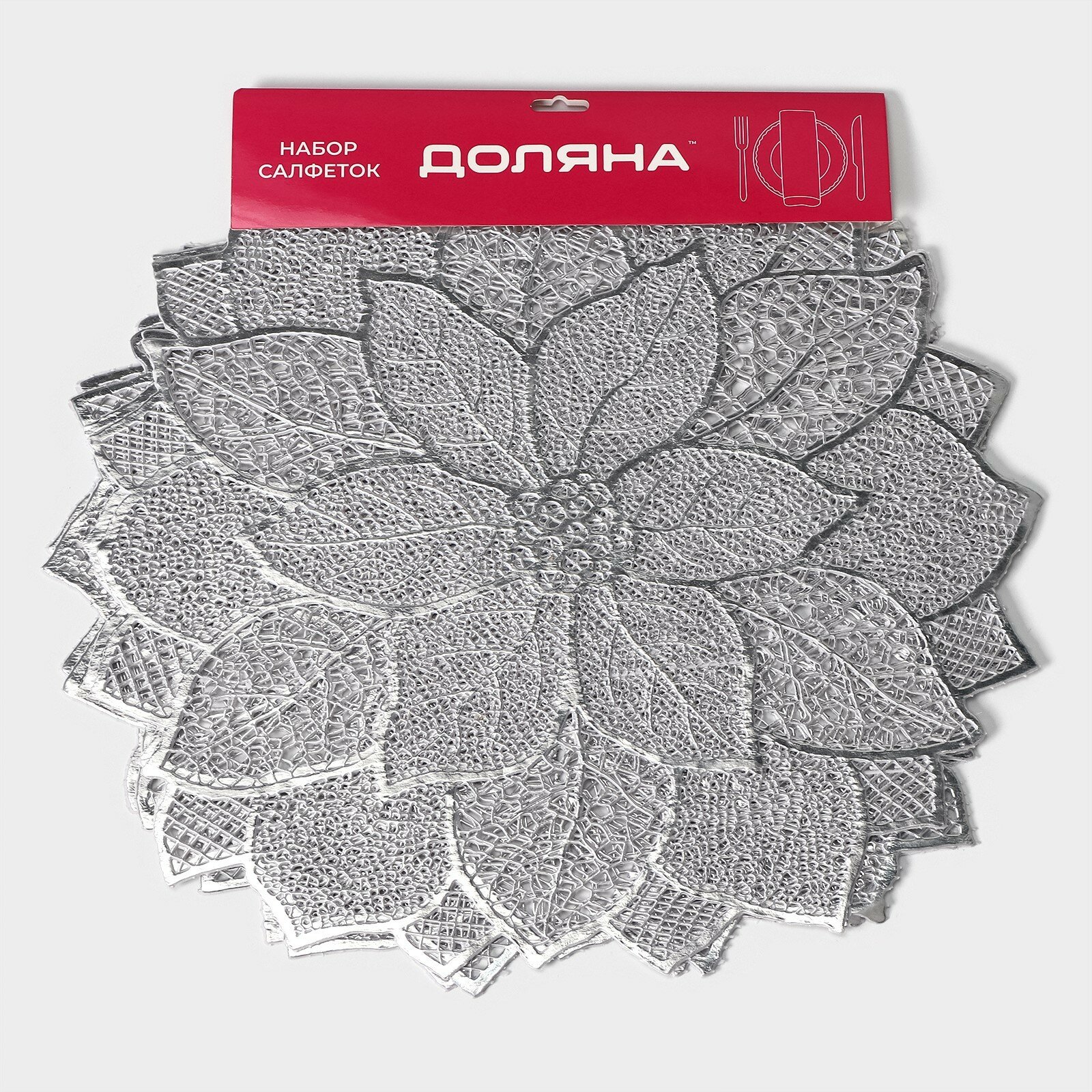 Набор салфеток сервировочных на стол Доляна "Цветок", 4 шт, 45х45 см, цвет серебряный