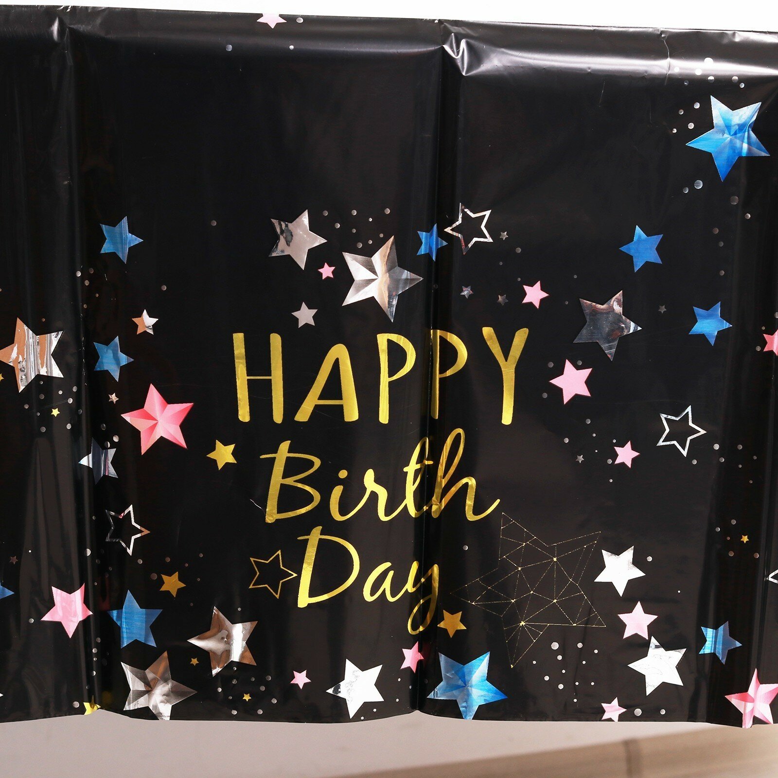 Скатерть «С Днём Рождения» 137×183 см, цвет чёрный, 7098190
