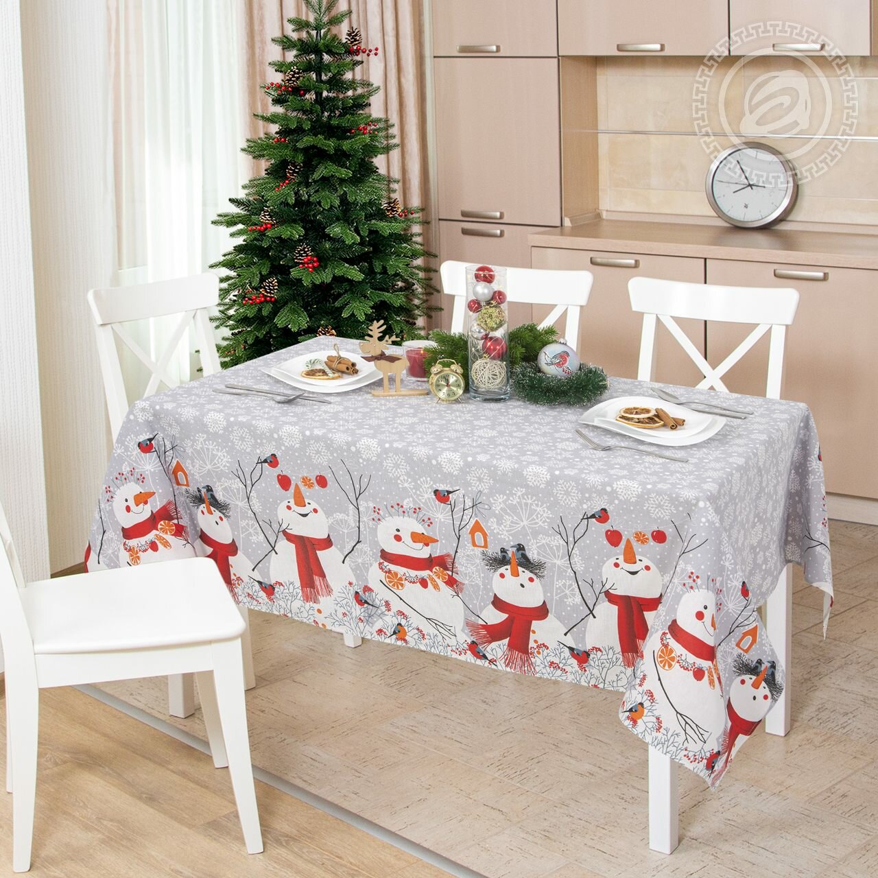 Скатерть из рогожки "Элис Текстиль "Снеговики", хлопок 100 %, 120 х 145 см, новый год 2024