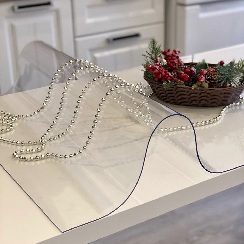 Гибкое стекло на стол 100x180см, прозрачное, ПВХ толщина 1.5 мм
