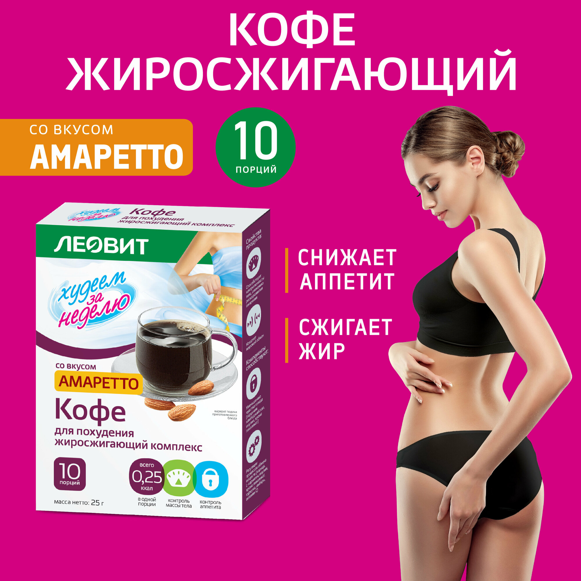 Купить Леовит Худеем на неделю Кофе для похудения (жиросжигающий комплекс) амаретто. 10 пакетов по 2,5 г. Упаковка 25 г.