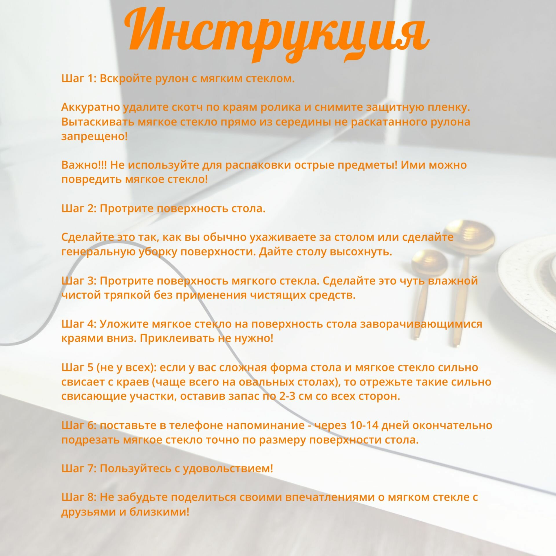 Гибкое стекло на стол , прозрачная пленка на стол, скатерть силиконовая на стол, толщина 1,5 мм