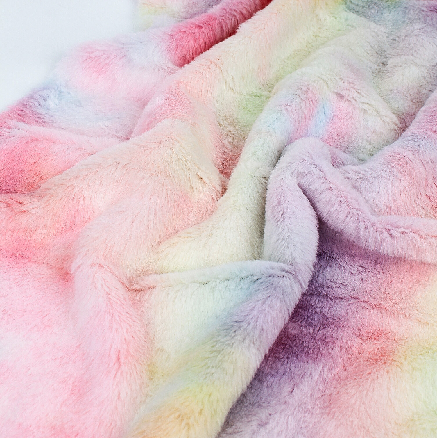 Купить Мех под норку, мягкий, искусственный, для рукоделия, ворс 11 мм, отрез 45х50 см, радужный