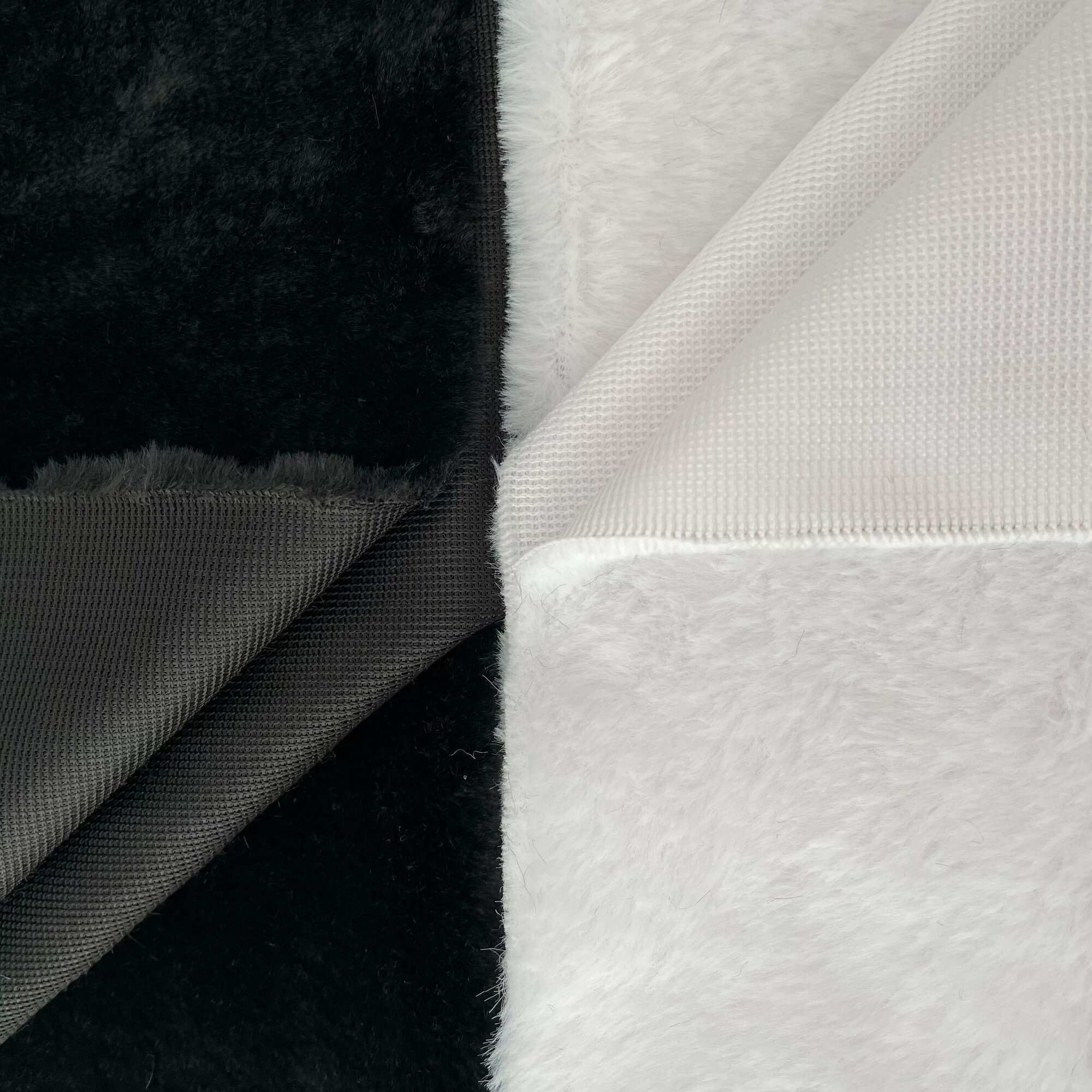 Купить Мех под норку, мягкий, искусственный, ворс 8 мм, набор 2 отреза, белый+черный, 50*50см