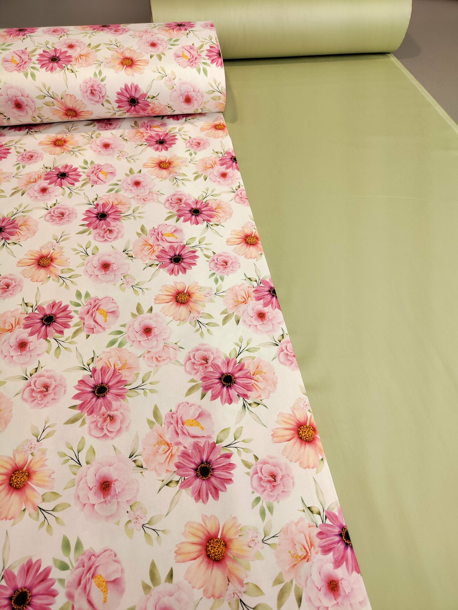 Ранфорс люкс (поплин Турция) ткань для пошива постельного белья , принт цветочный, метражом на отрез от 1 метра