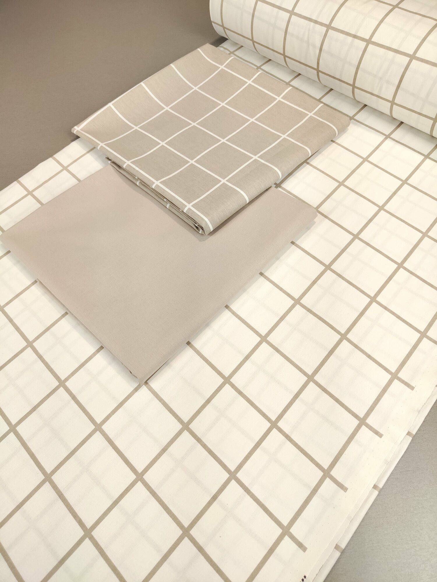 Ранфорс люкс (поплин Турция) ткань для пошива постельного белья , принт клетка крупная бежевая, метражом на отрез от 1 метра