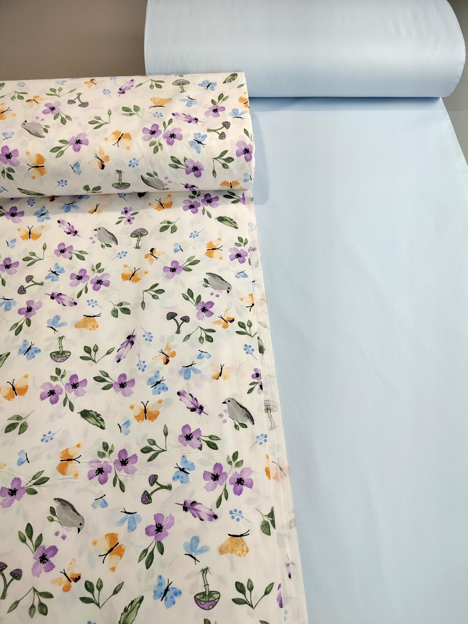 Ранфорс люкс (поплин Турция) ткань для пошива постельного белья , принт птичка на веточке, метражом на отрез от 1 метра