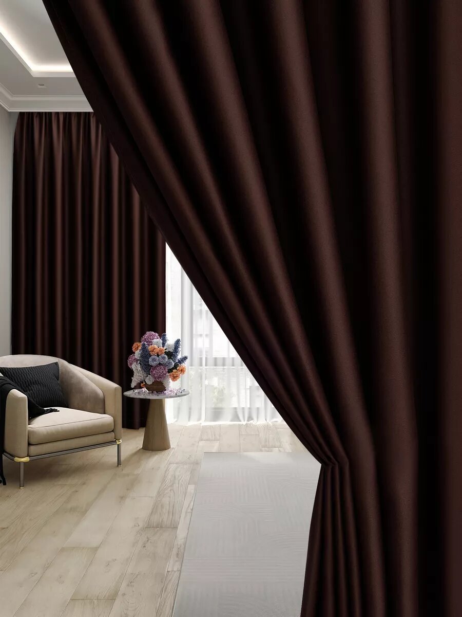 Шторы портьеры Блэкаут комплект 150х270 (2 шт.), горький шоколад