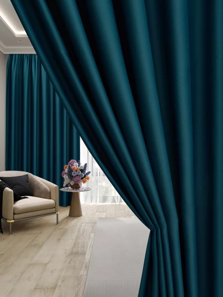 СохранитьШторы портьеры блэкаут бирюзовый комплект 150х250 (2шт.) сине-зеленый интересное: