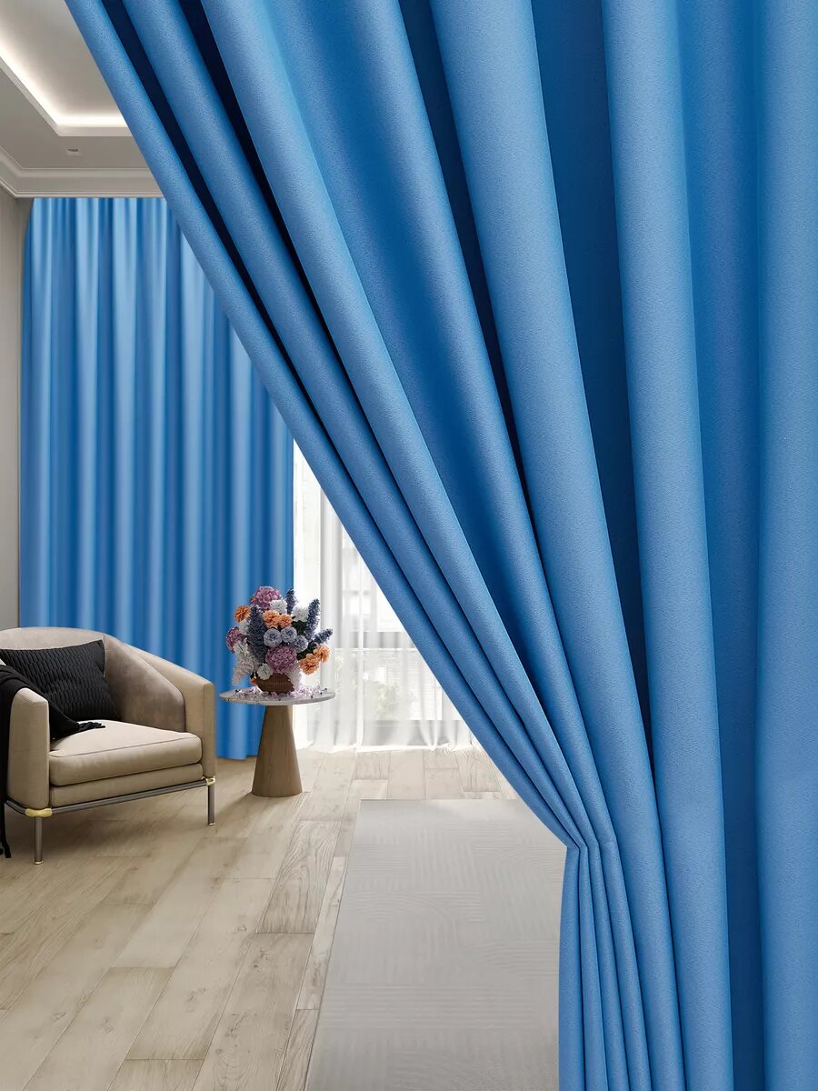 Шторы портьеры блэкаут, комплект 150х270 (комплект из 2шт.), синий цвет