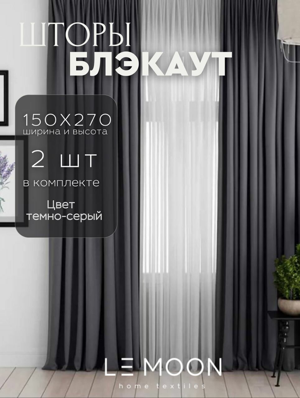 Шторы Блэкаут в спальню, в кухню, в гостинную 150х270; темно-серый интересное:
