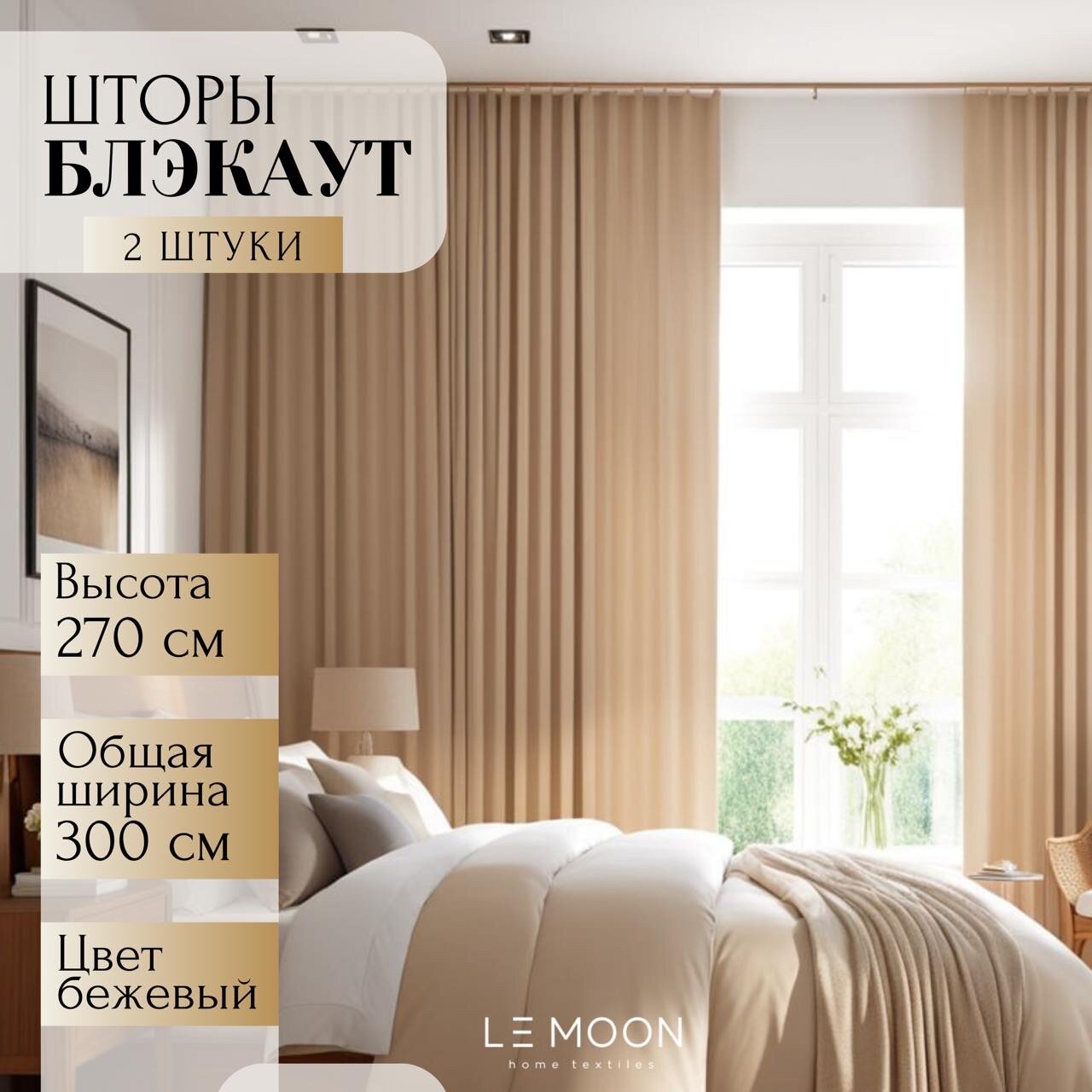 Шторы интерьерные Блэкаут LEmoon, 150*270 2шт; бежевый,слоновая кость