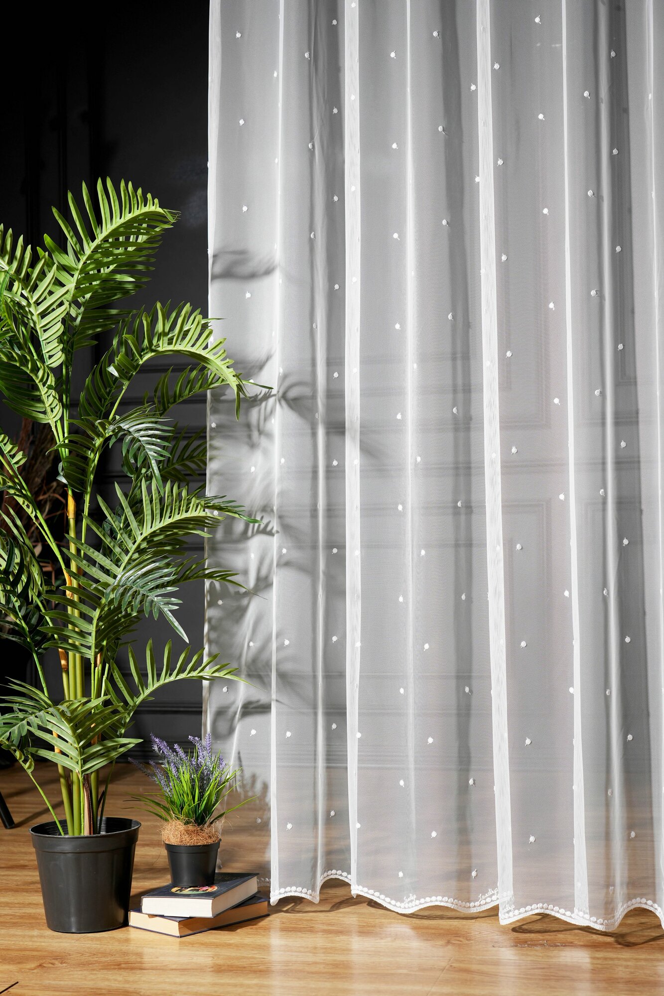 Тюль для комнаты и кухни с вышивкой высота 260 см, ширина 300 см, крепление - лента, цвет - белый. интересное: