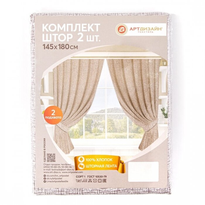 Шторы для кухни 145х180 (2 шт.) с подхватом Лён капучино интересное: