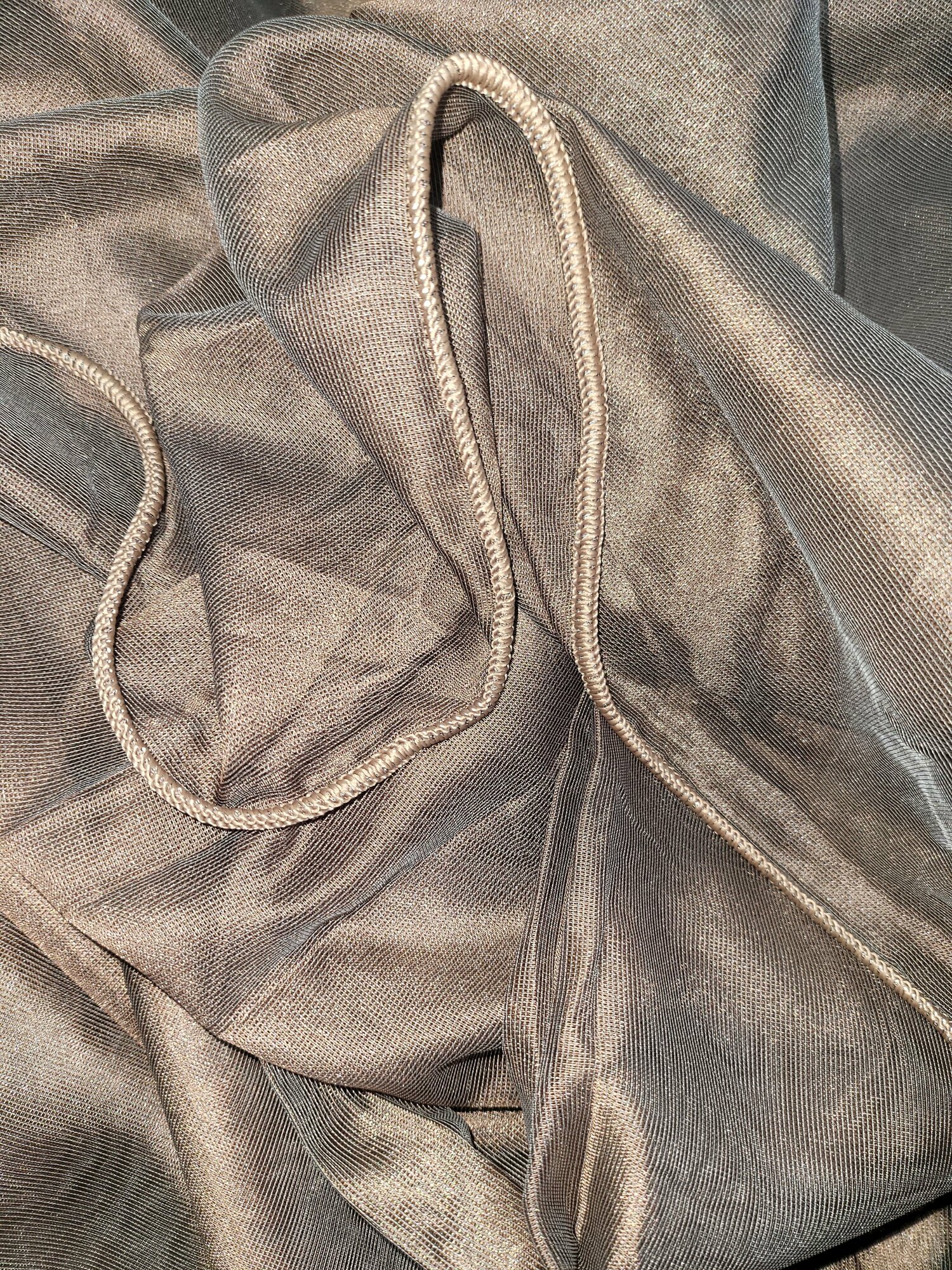 Тюль для комнаты сетка двухниточная премиум 250 см высота 600 см ширина на шторной ленте цвет бежевый серебристый
