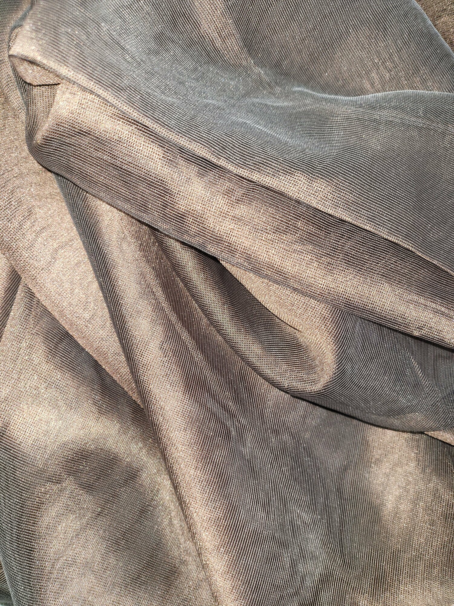 Тюль для комнаты сетка однотонная 250 см высота 130 см ширина на шторной ленте цвет шоколадный с золотым блеском