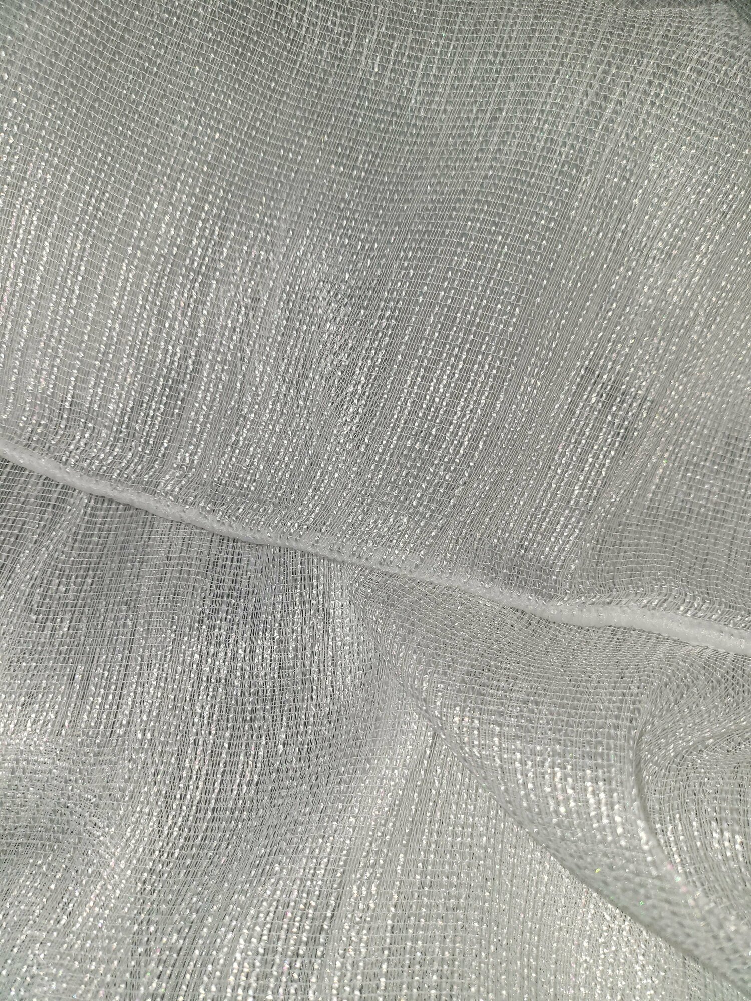 Тюль для комнаты сетка двухниточная 250 см высота 600 см ширина на шторной ленте цвет белый серебристый с блеском