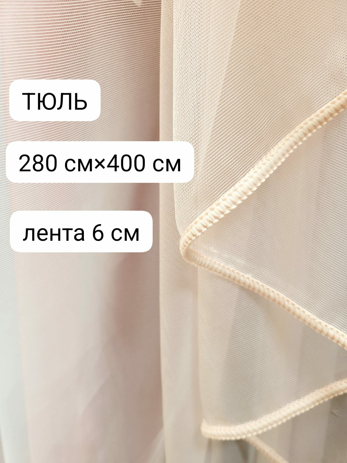 Тюль для комнаты сетка двухниточная премиум 280 см высота 200 см ширина на шторной ленте цвет бежевый