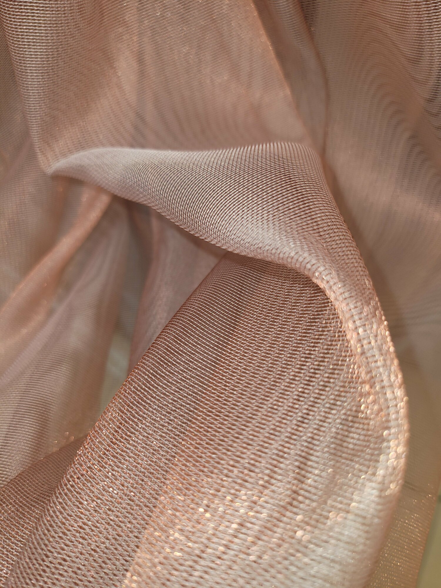 тюль для комнаты сетка однотонная 270 см высота 400 см ширина на шторной ленте цвет светлый коралловый с блеском