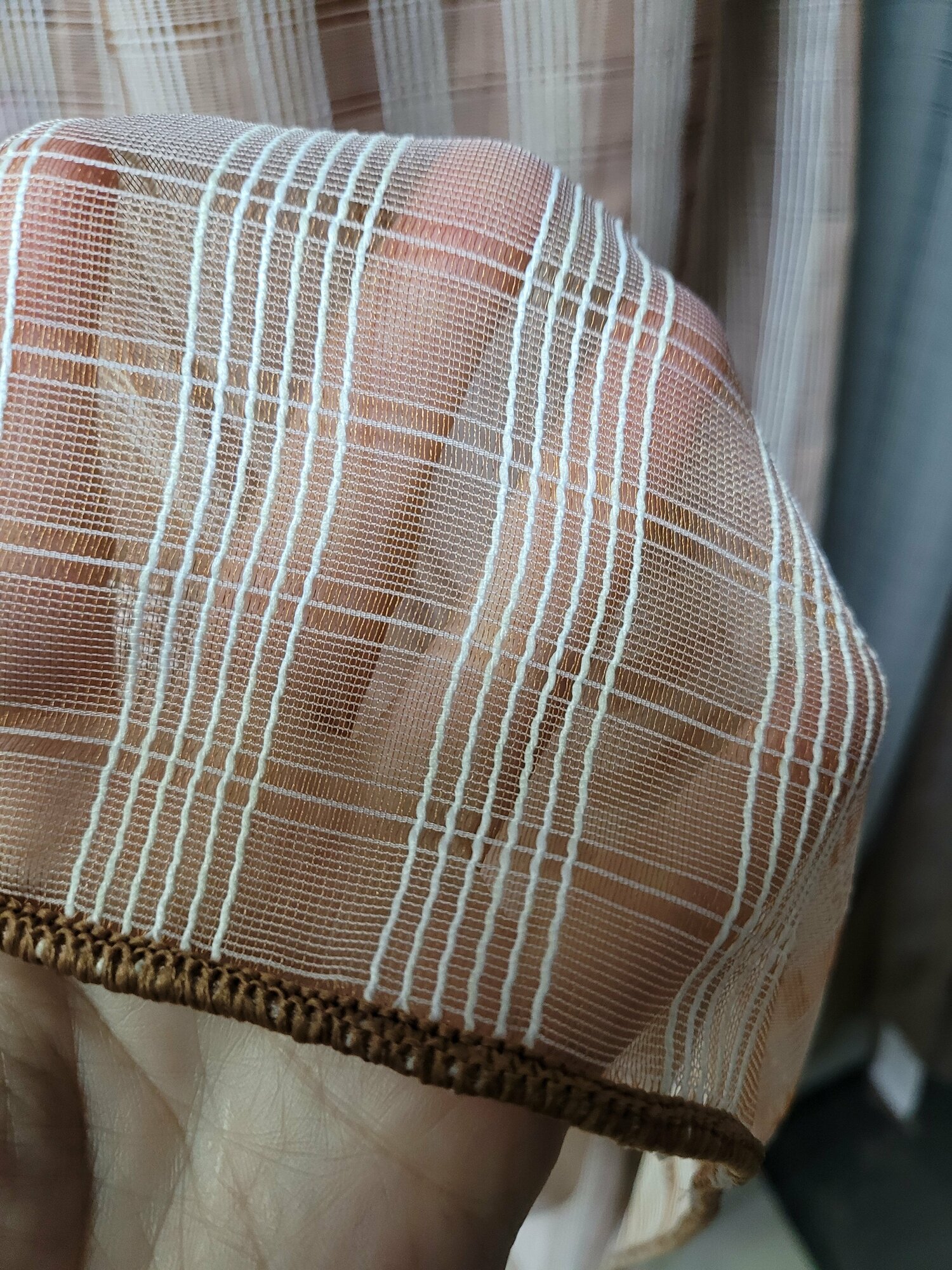 Тюль для комнаты сетка фактурная 270 см высота 300 см ширина на шторной ленте цвет бежевый матовый