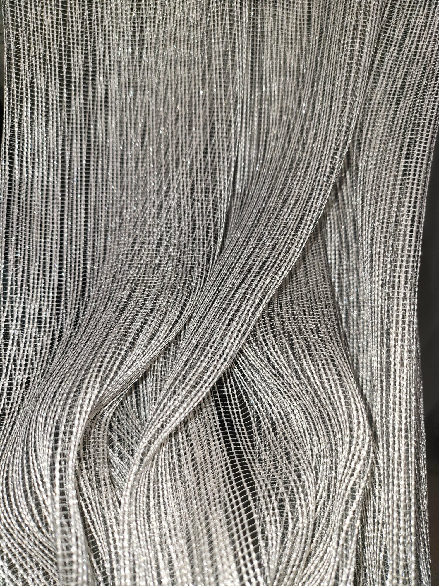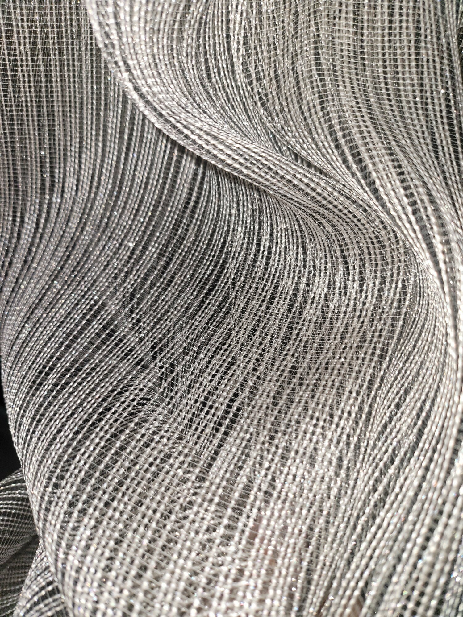Тюль для комнаты сетка двухниточная 250 см высота 600 см ширина на шторной ленте цвет черный серебристый с блеском