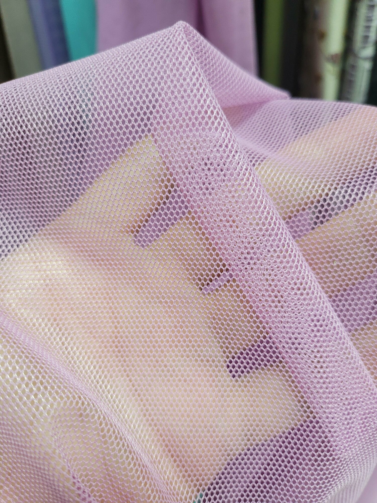 Тюль для комнаты сетка фактурная 270 см ширина 470 см ширина на шторной ленте цвет сиреневый розовый матовый