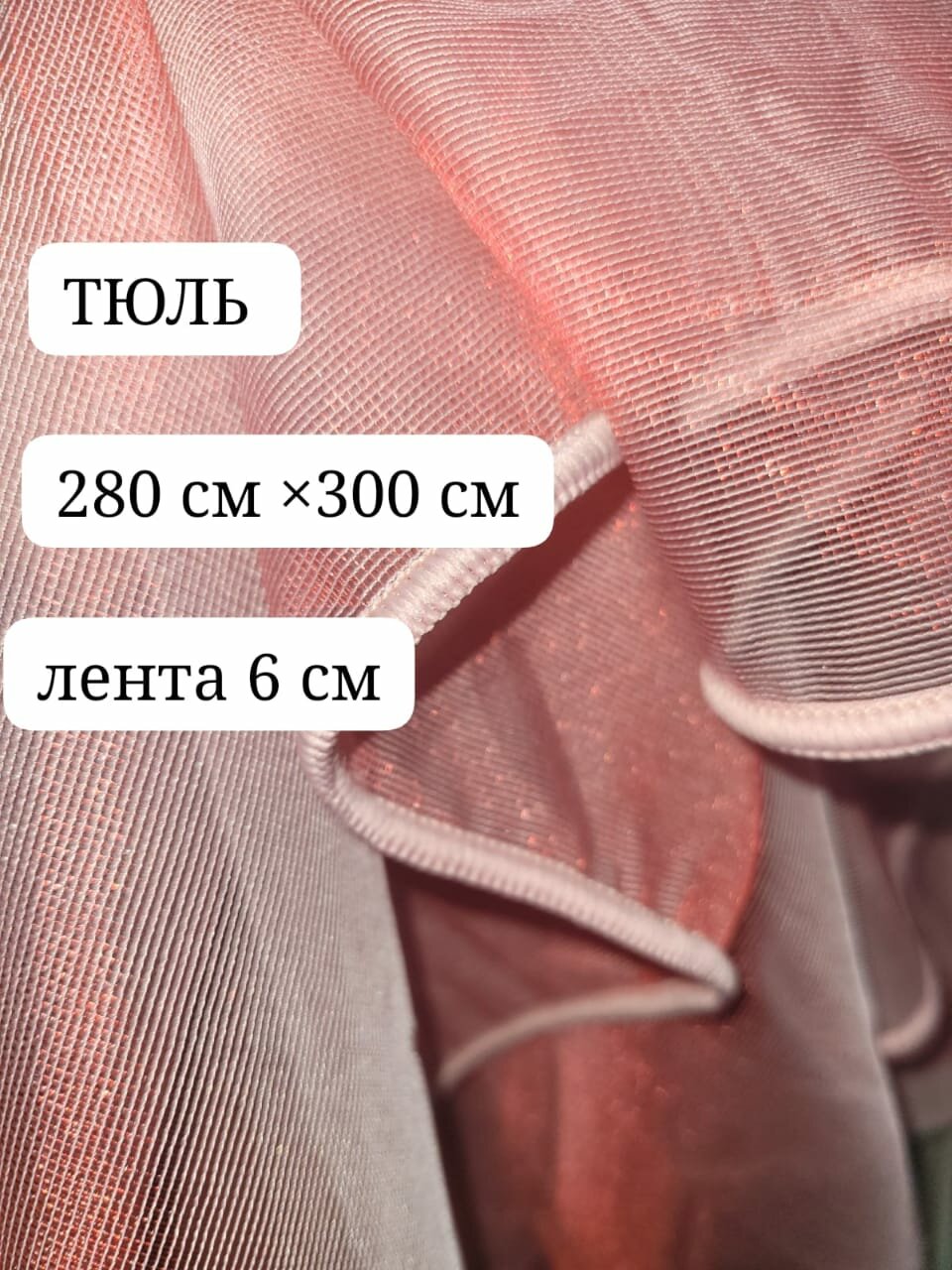 тюль для комнаты сетка однотонная 280 см высота 300 см ширина на шторной ленте цвет светлый коралловый с блеском