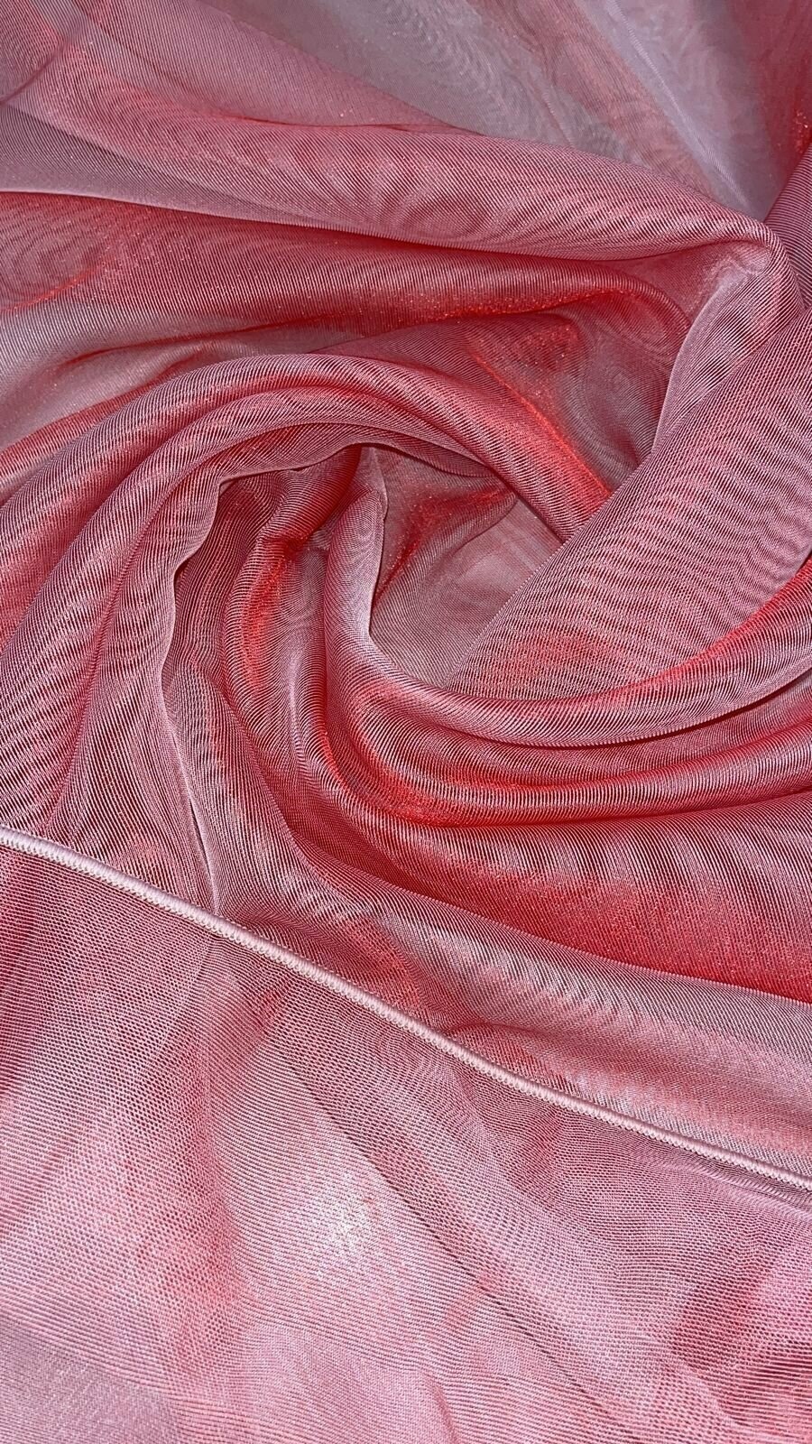 Тюль для комнаты сетка однотонная 270 см высота 600 см ширина на шторной ленте цвет коралловый с блеском