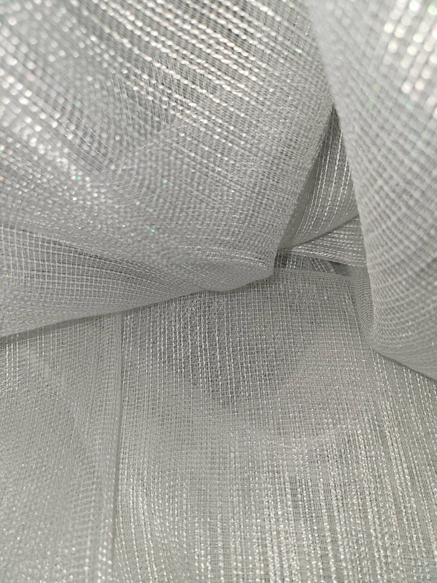 Тюль для комнаты сетка двухниточная 260 см высота 600 см ширина на шторной ленте цвет белый серебристый с блеском