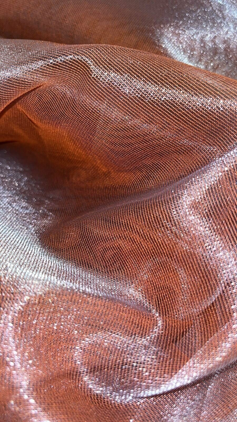 Тюль для комнаты сетка однотонная 250 см высота 130 см ширина на шторной ленте цвет светлый коралловый с блеском