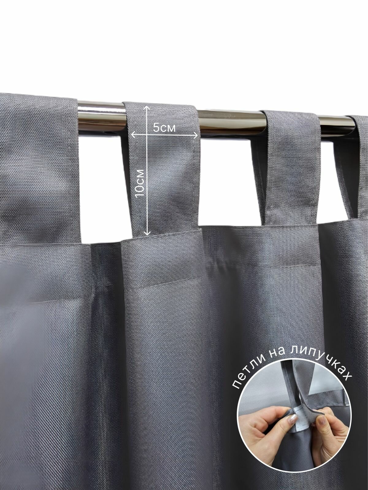Штора уличная 260х145 см из оксфорда 600 D на петлях с липучками для беседки, террасы, веранды, летнего кафе, цвет светло-серый