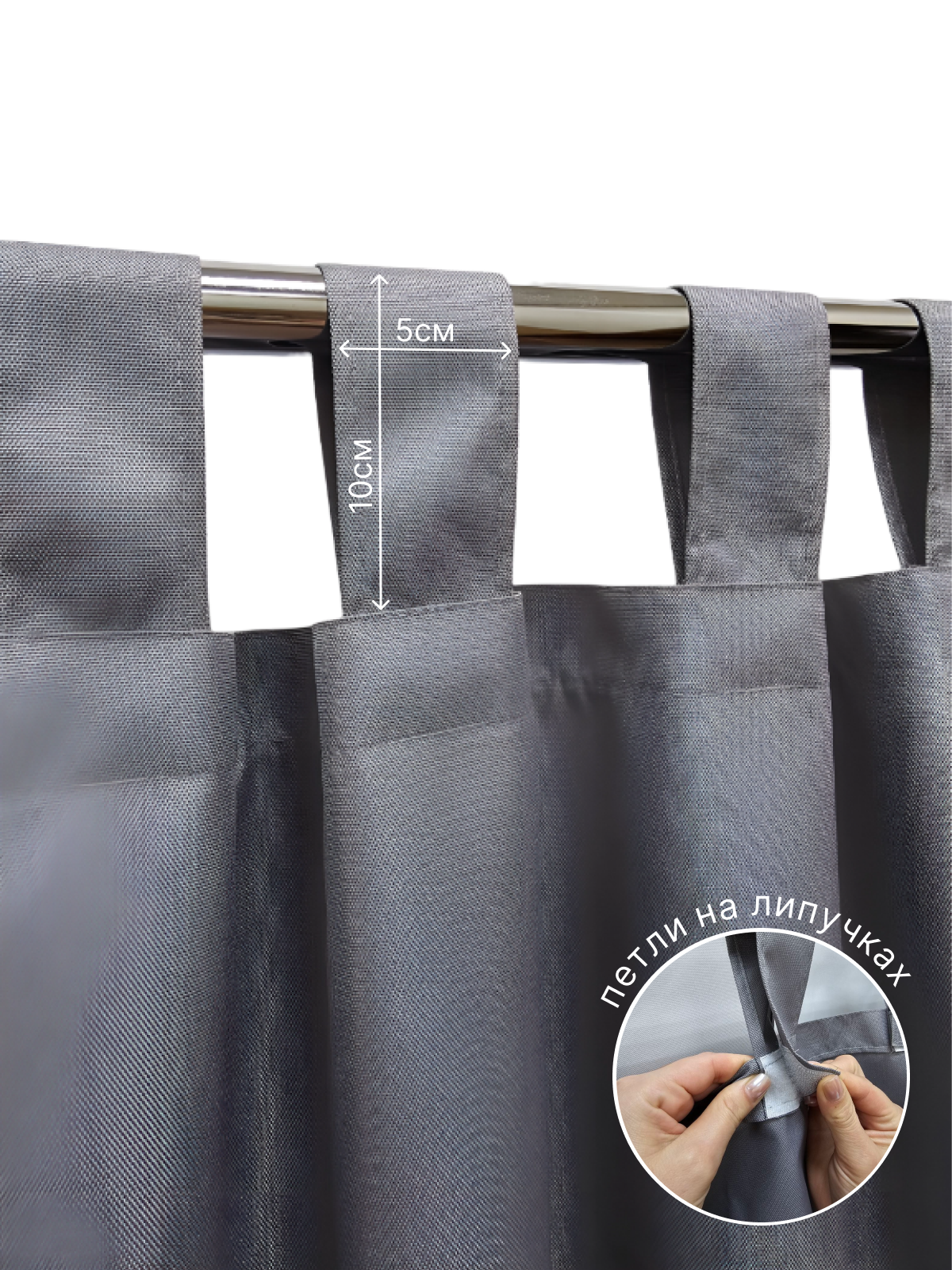 Штора уличная 200х145 см из оксфорда 600 D на петлях с липучками для беседки, террасы, веранды, летнего кафе, цвет светло-серый