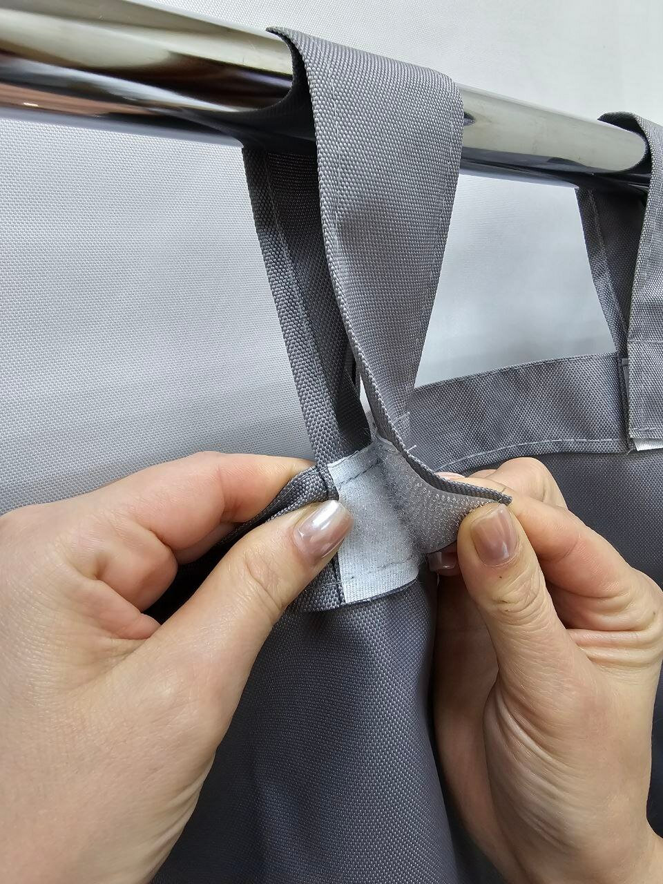 Штора уличная 200х145 см из оксфорда 600 D на петлях с липучками для беседки, террасы, веранды, летнего кафе, цвет светло-серый
