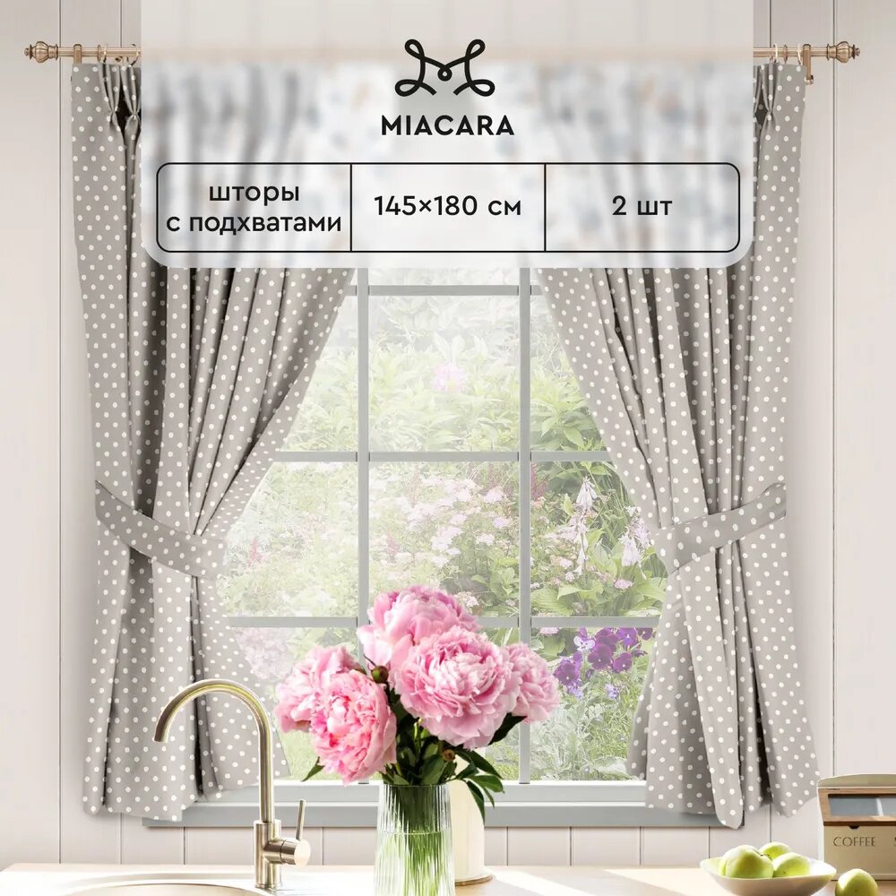 СохранитьКомплект штор с подхватом рогожка 145х180 (2 шт) "Mia Cara" рис 30394-1 Горох интересное: