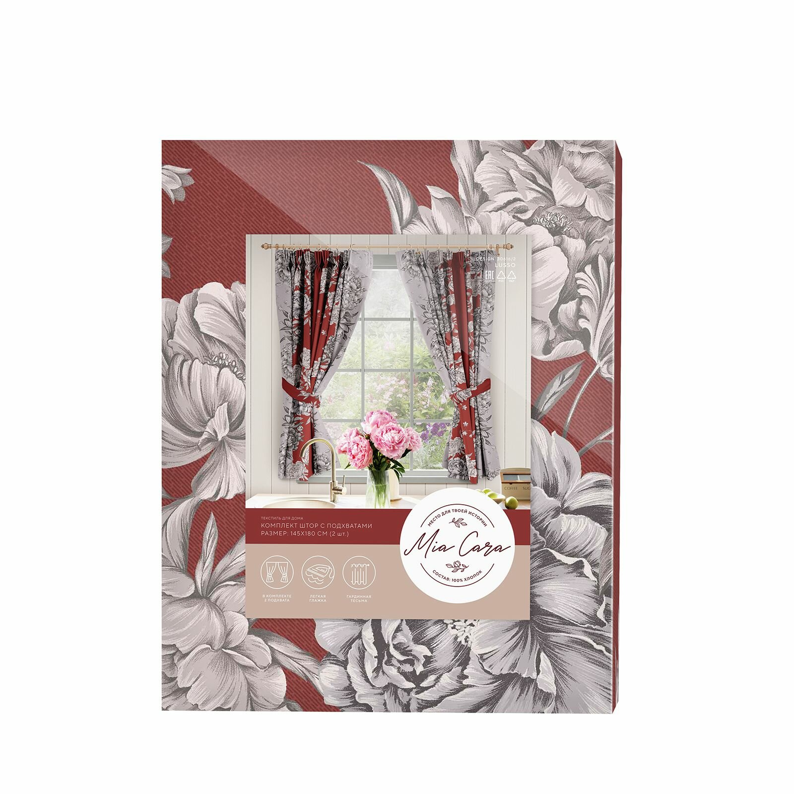 Комплект штор с подхватом рогожка 145х180 (2 шт) "Mia Cara" рис 30200-1 Душистый пион