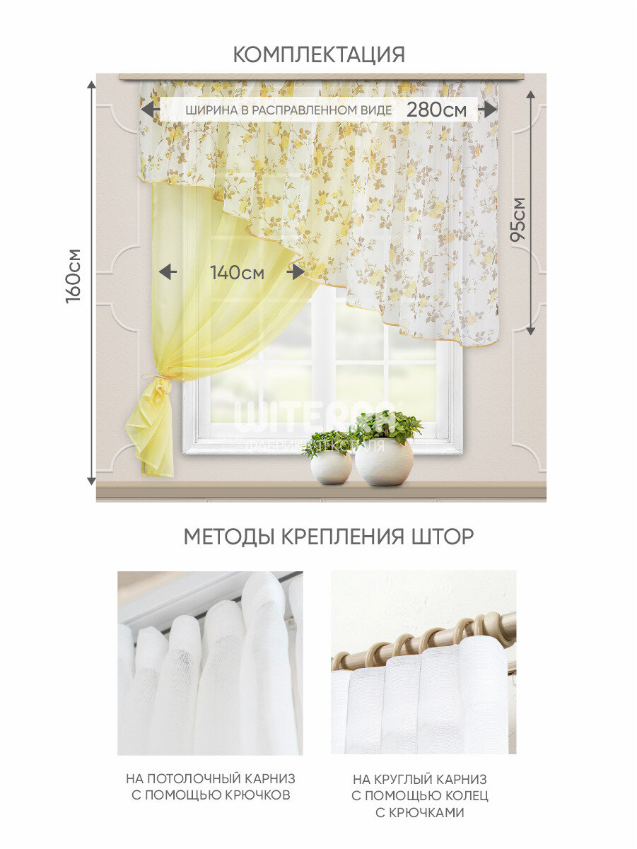 | Дополнительная информация | размер тюля: 140*160 см., размер ламбрекена: 280*95 см, комплект состоит из шторы и ламбрекена |