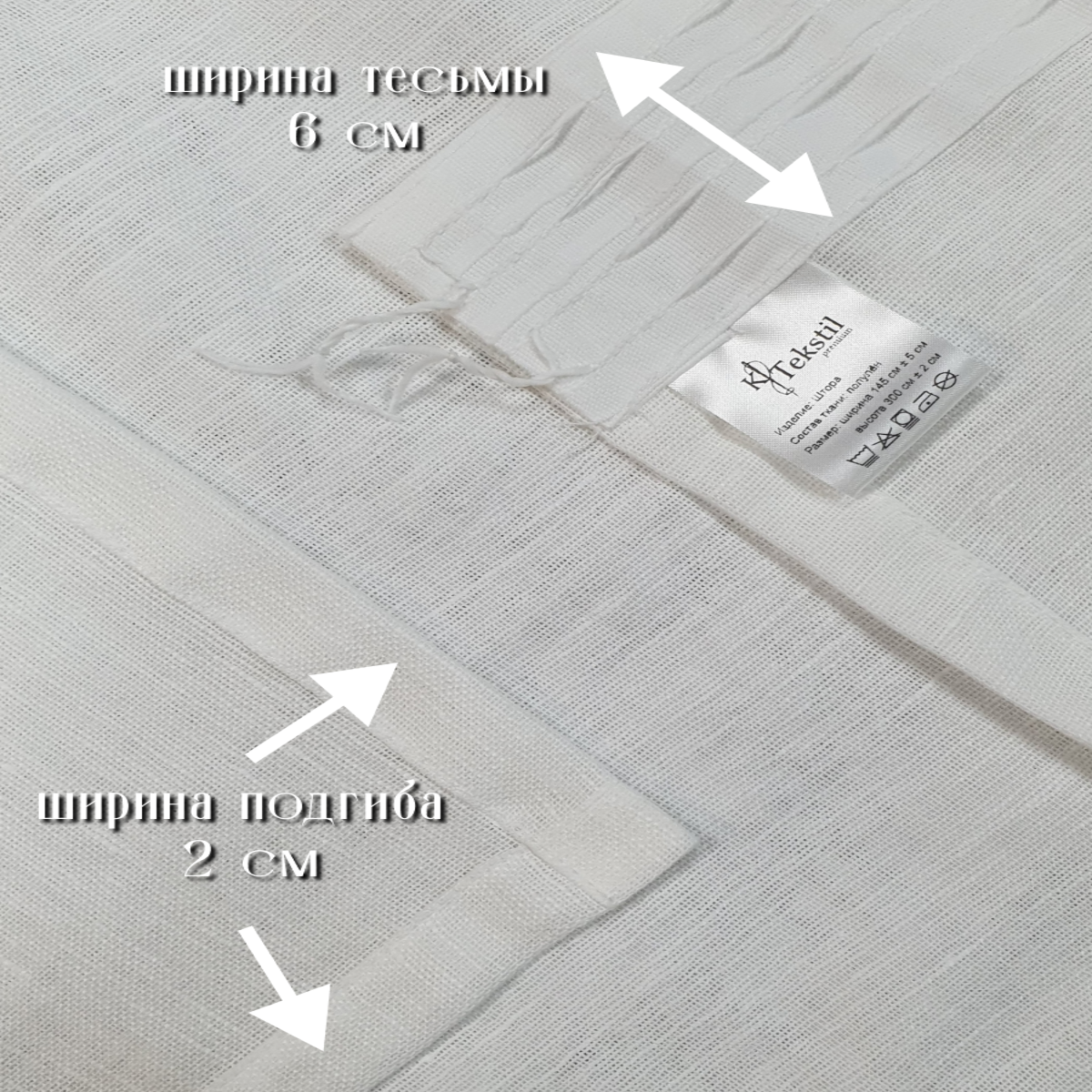 Тюль Лен Хлопок ПолуЛен 100% натуральный, Ш*В - 145*300см, белый интересное: