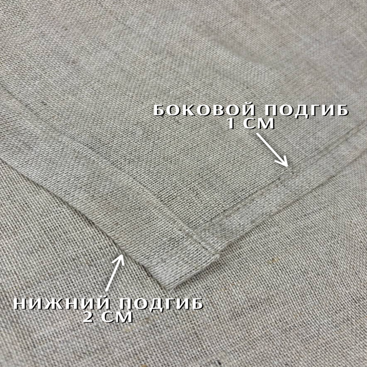 Натуральные льняные шторы 100%, лен хлопок полулен, ширина 145, высота 300, правая, серый / черный