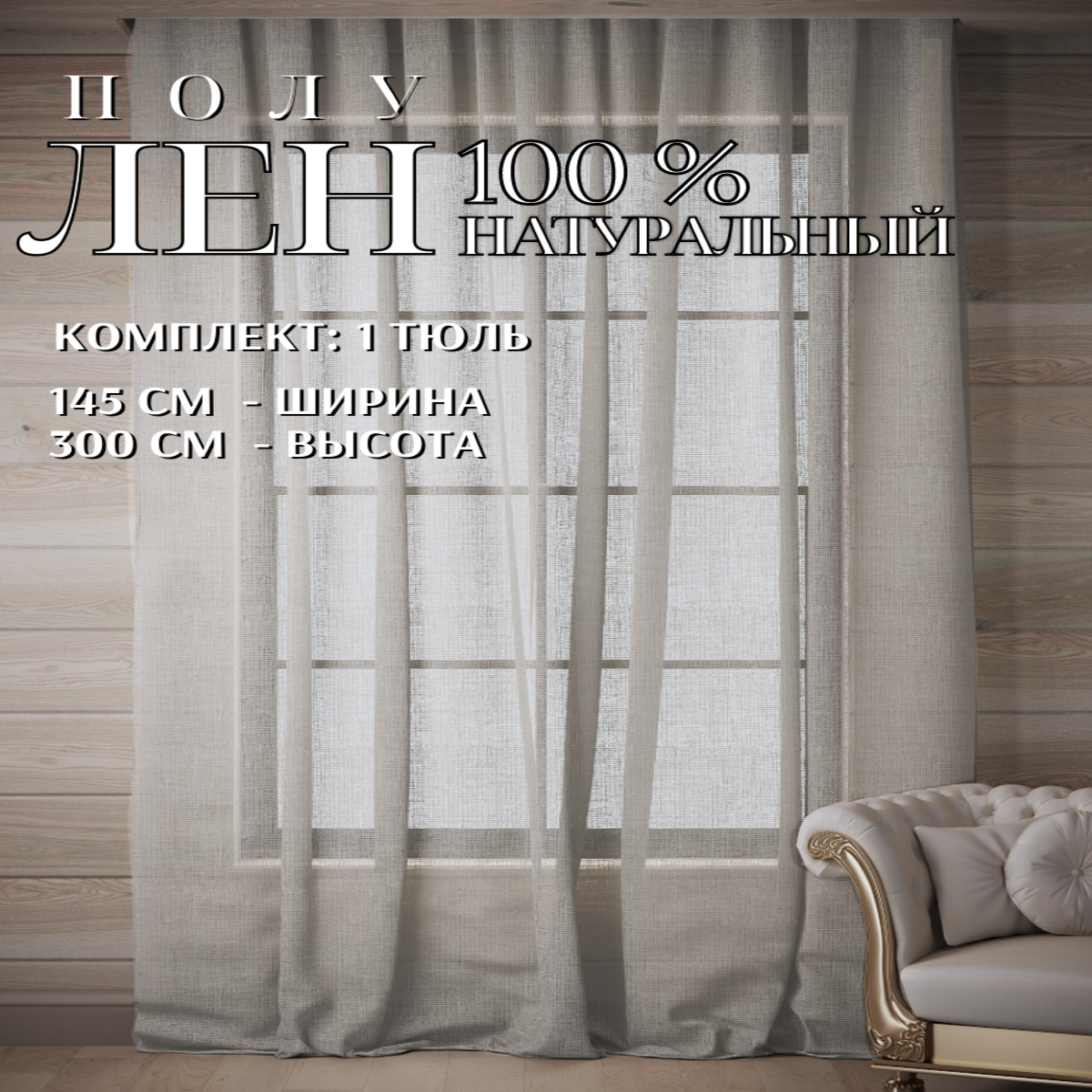 Тюль Лен Хлопок ПолуЛен 100% натуральный, Ш*В - 145*300см, серо-бежевый интересное: