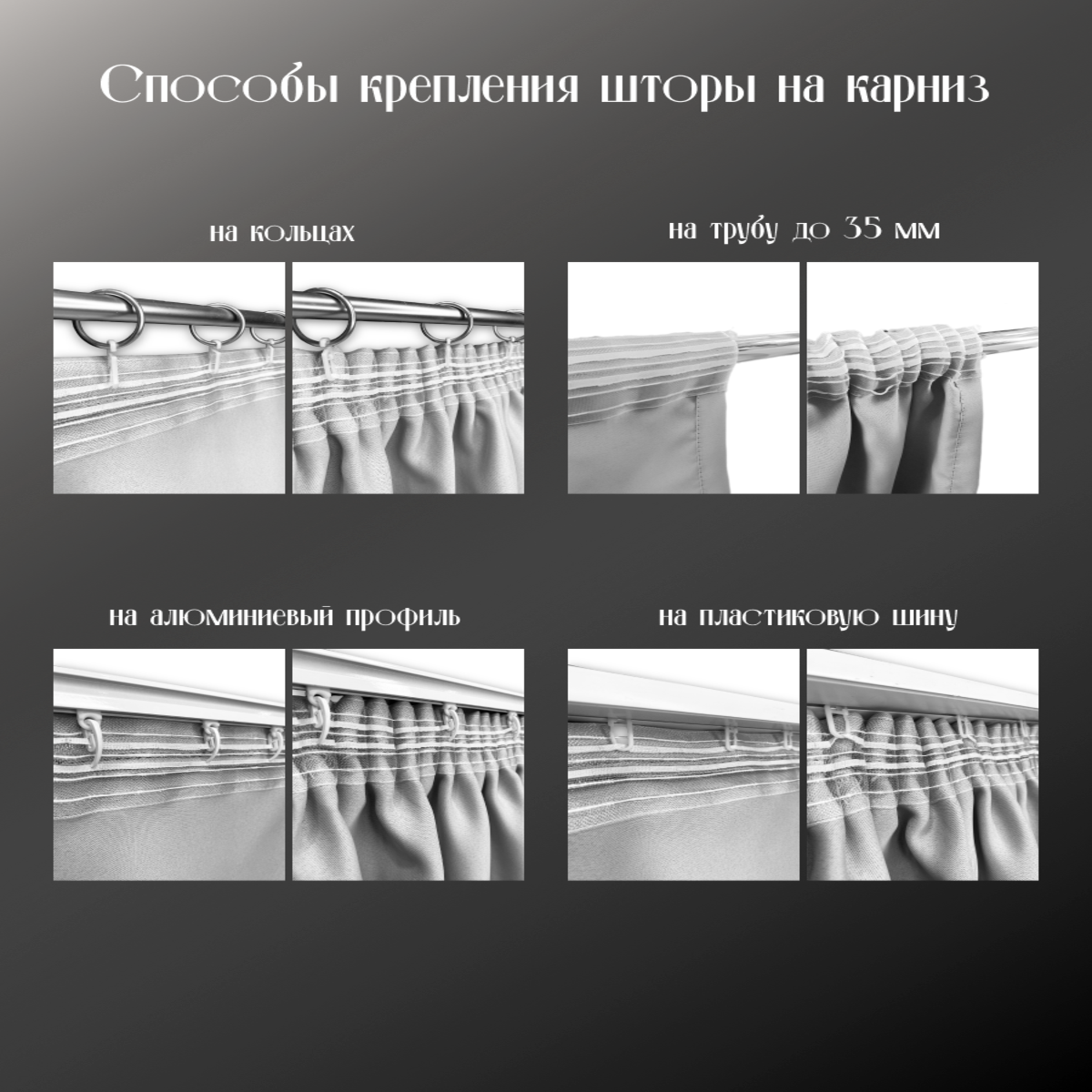 | Дополнительная информация | Легкие, идеально подойдут к плотным шторам |
