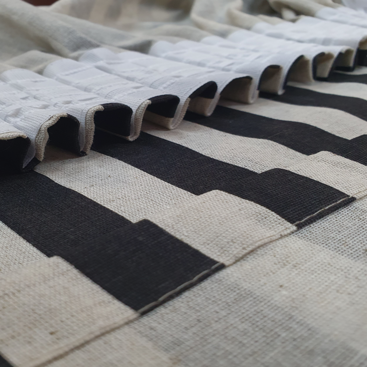 Натуральные льняные шторы 100%, лен хлопок полулен, ширина 145, высота 300, левая, черный / серый