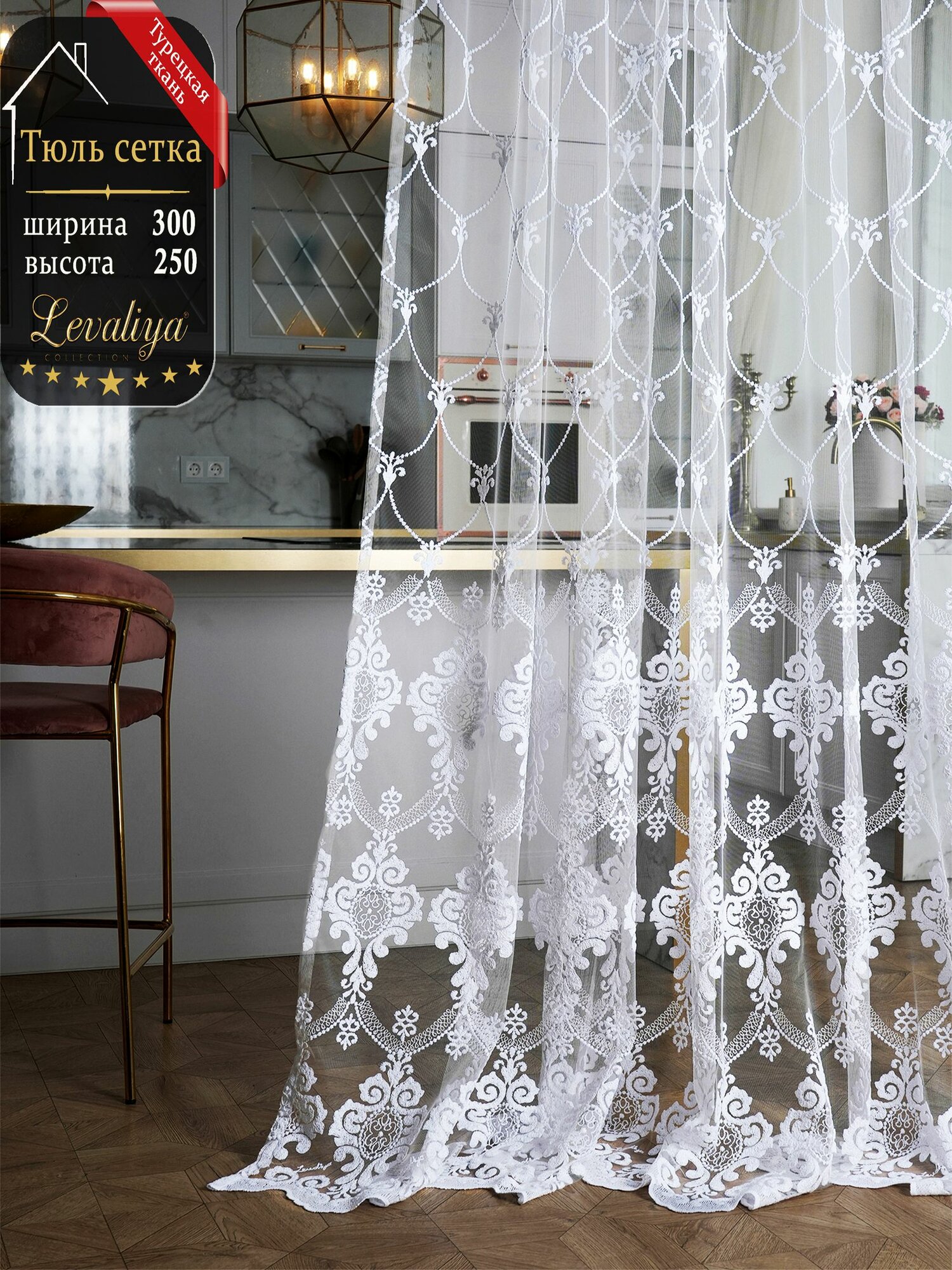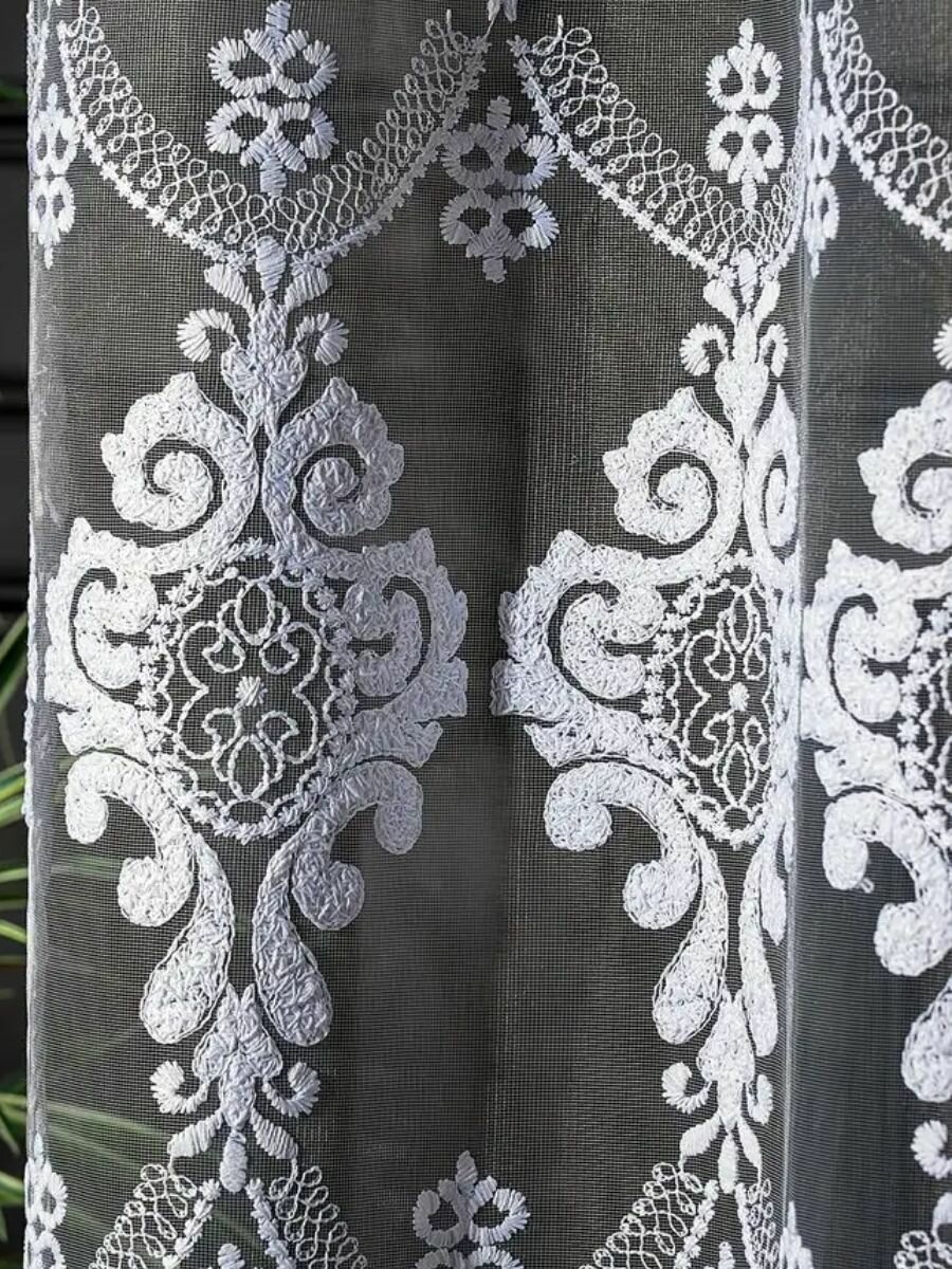Тюль для комнаты и кухни с вышивкой высота 250 см, ширина 300 см, крепление-лента, цвет-белый. интересное: