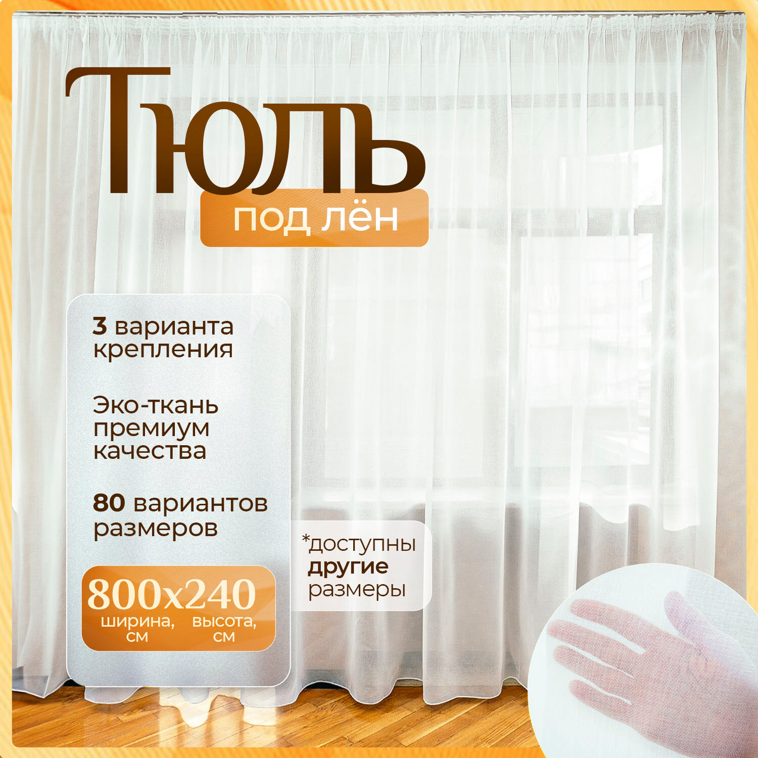СохранитьТюль под лен белая 800х240 см с утяжелителем длинная для гостиной, спальни, кухни интересное: