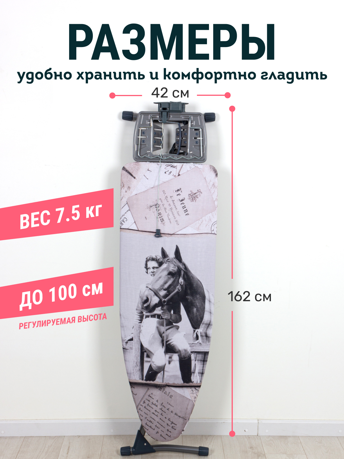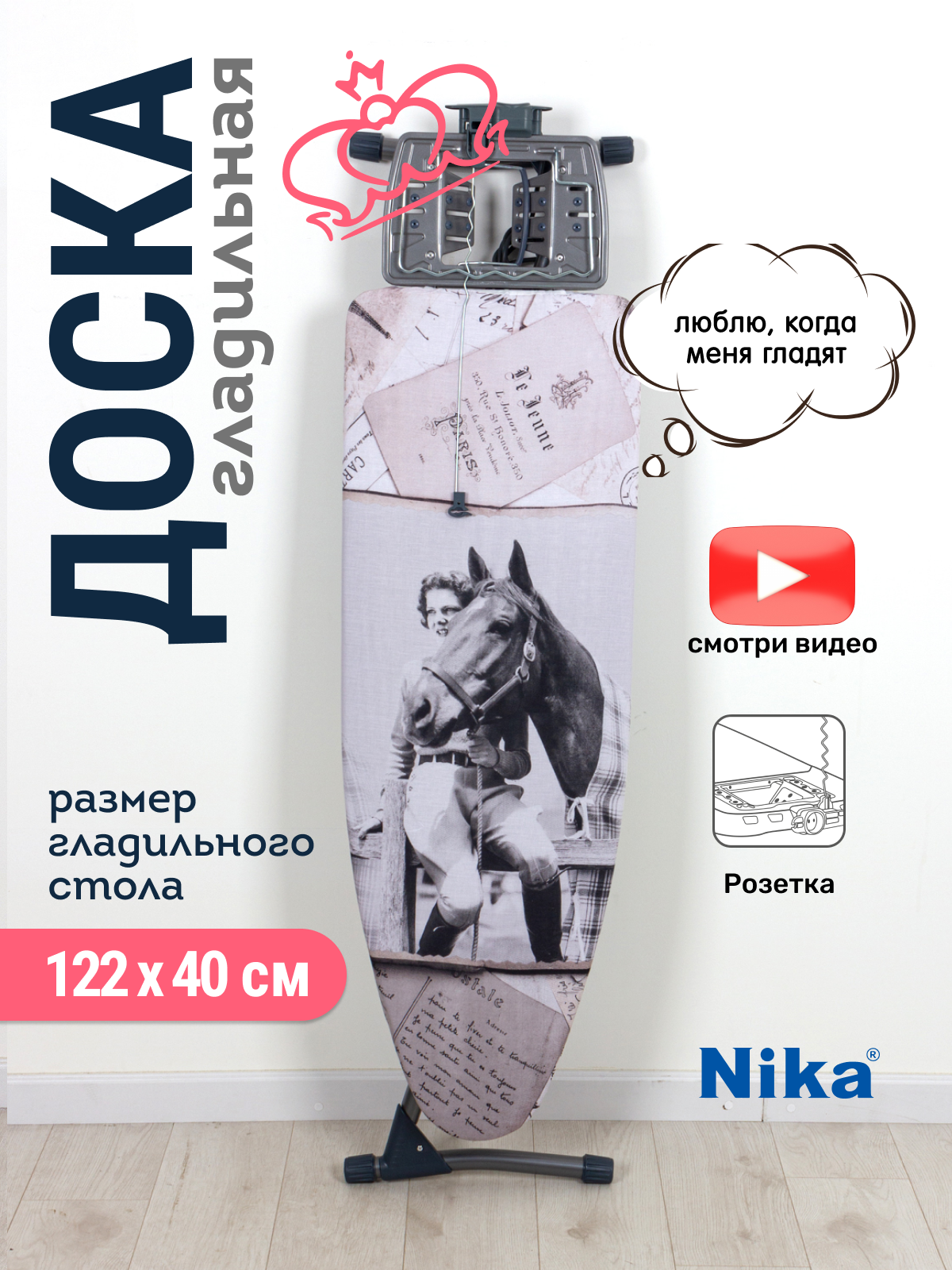 Гладильная доска Ника Nika-grant 1 122 х 40 см с девушкой и лошадью интересное: