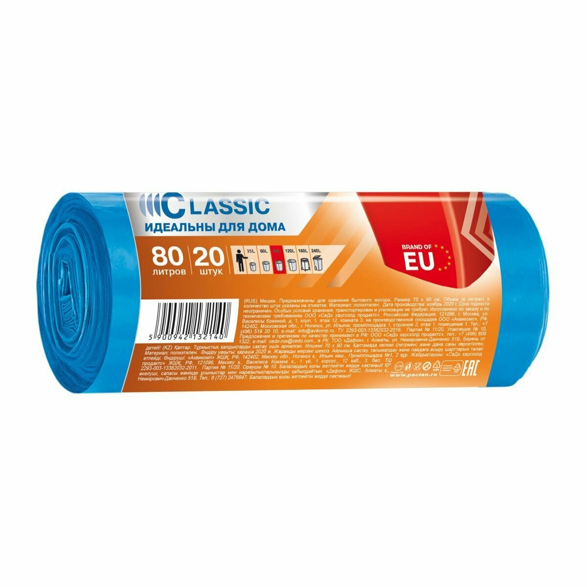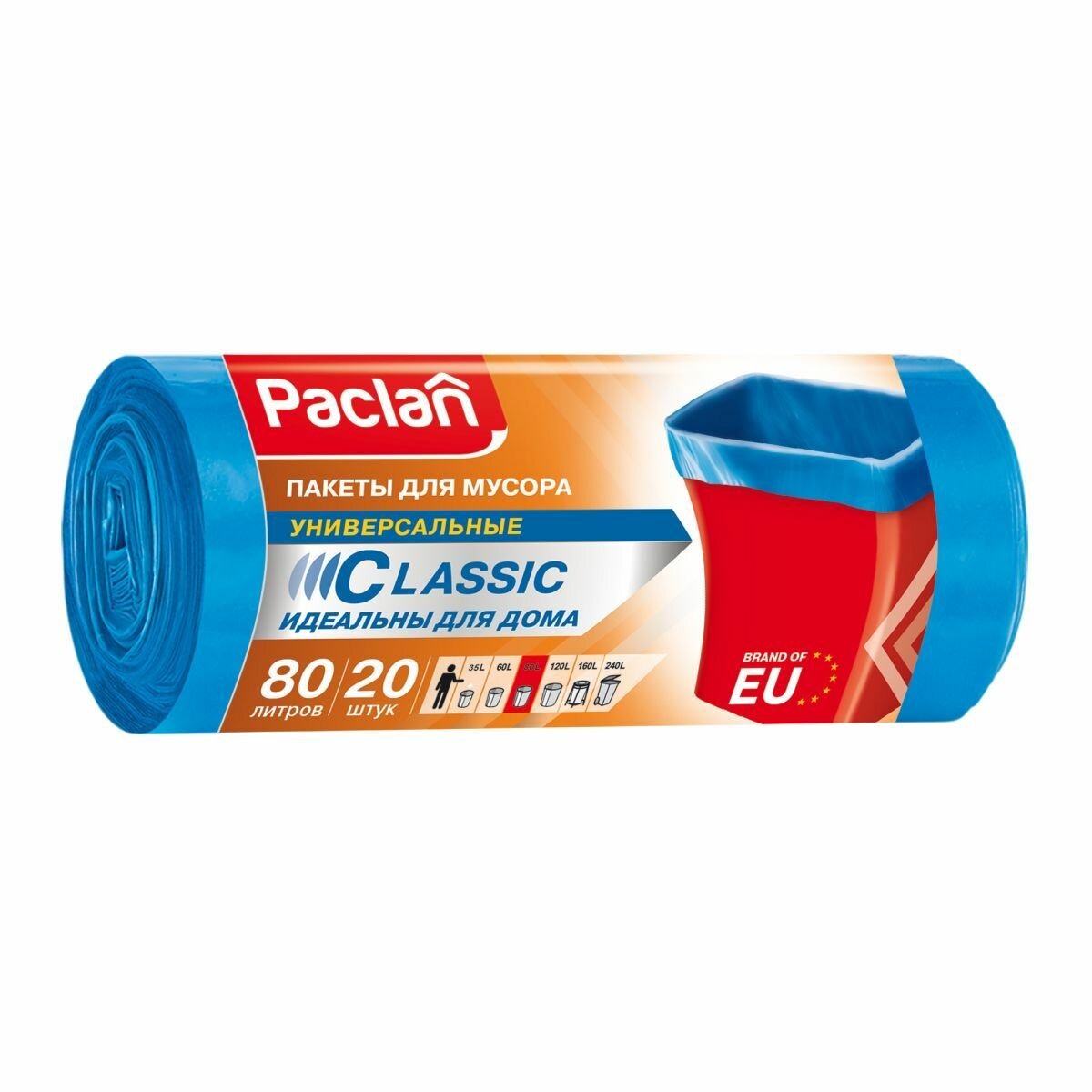 Мешки для мусора 80 л, 3 рулона по 20 шт, синие, CLASSIC, Paclan интересное: